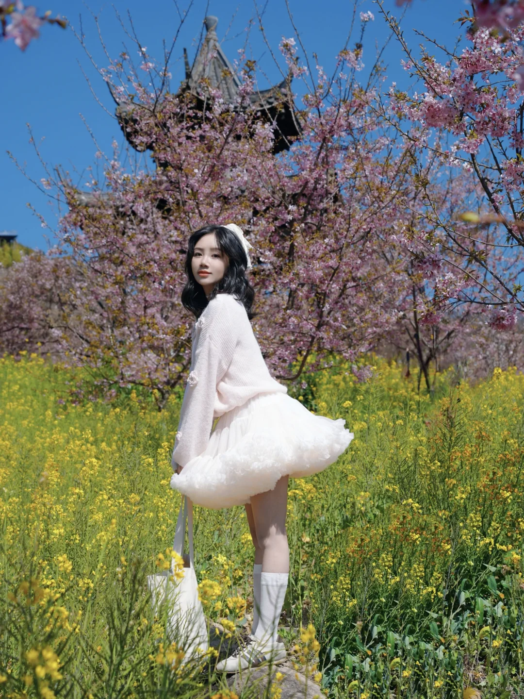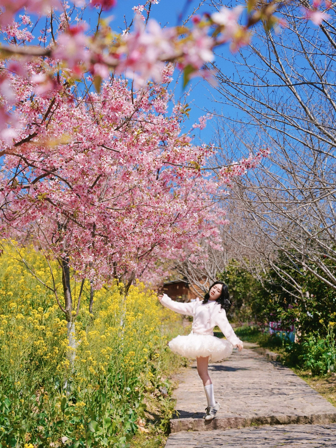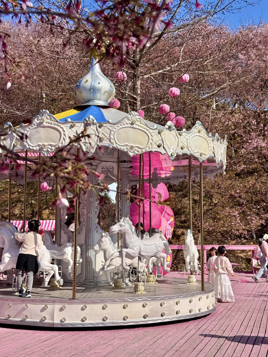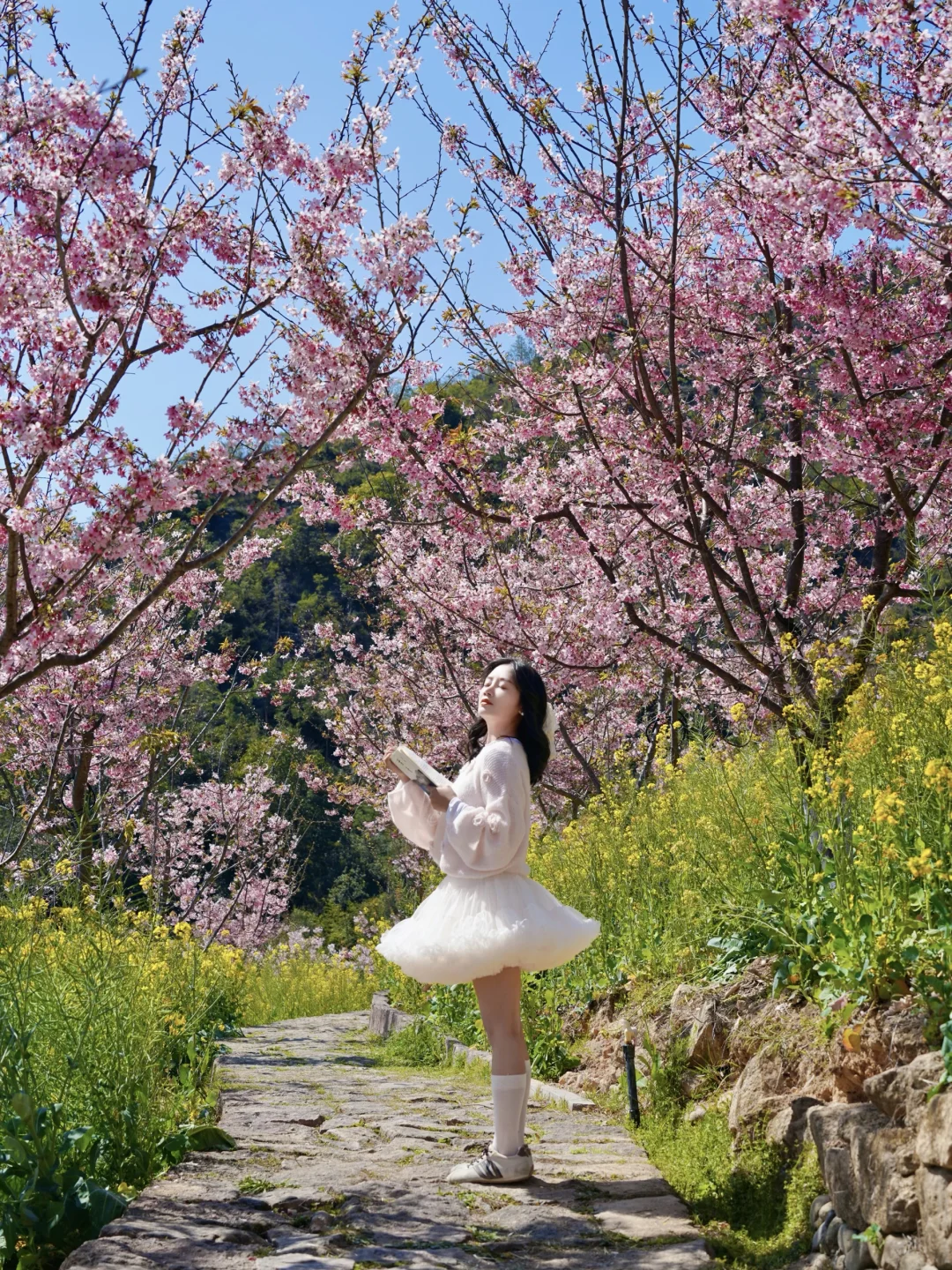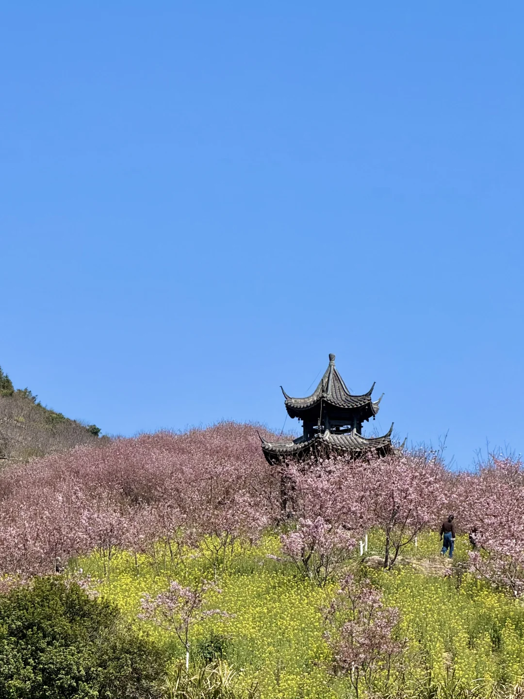 进入景区会听到大喇叭说去新开的樱花拍,记得带个凳子过去拍!拍完再去右边满山油菜花➕樱花的山去拍,非常适合带娃玩,那边很多儿童乐园!