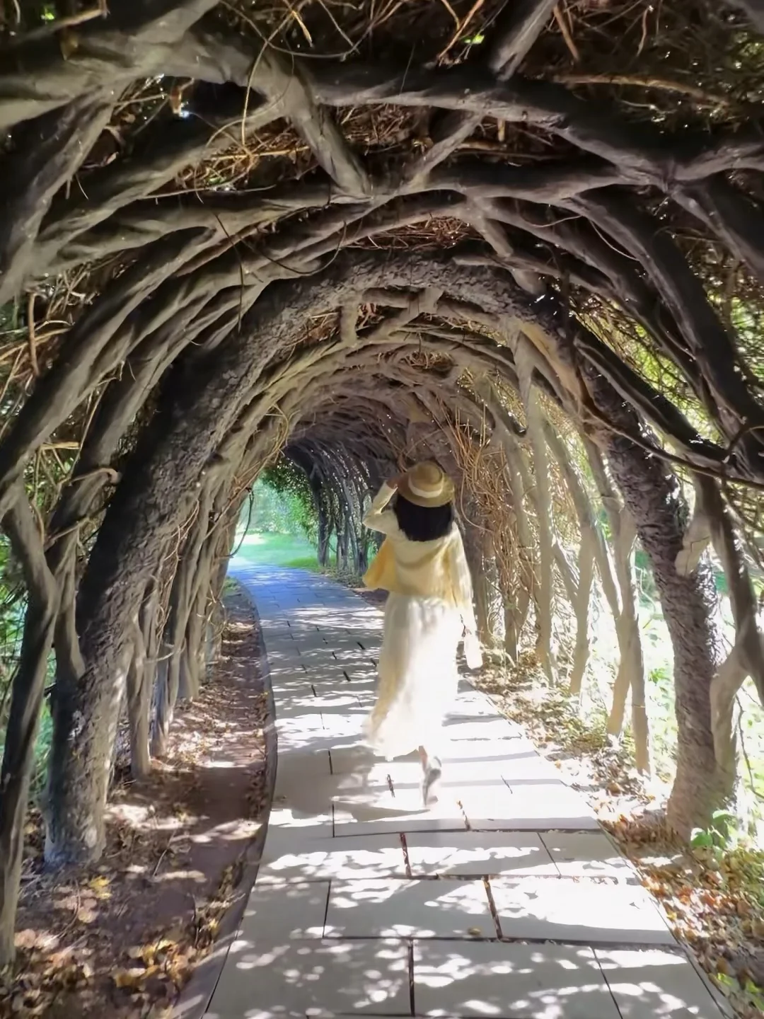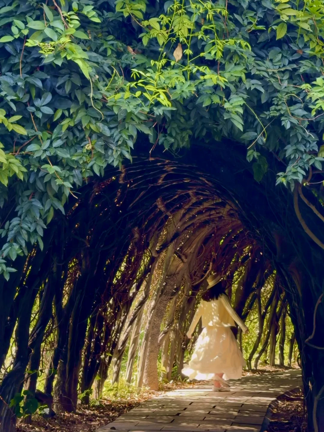 阳光透过藤蔓洒在裙摆上