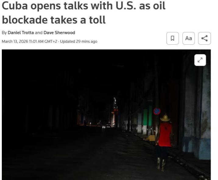 古巴被迫开始与美国政府谈判 3月13日,古巴总统米格尔·迪亚斯-卡内尔在向古巴民众发表的电视讲话中,宣布启动与美国的谈判。 原因是,美国总统特朗普实施的石油封锁,正把古巴推向更深重的经济危机。 古巴本身是个岛国,自己产的石油很少,自给率还不到四成,每天最少需要11万桶石油,大部分都得从别的国家进口。 以前,古巴的石油主要来自委内瑞拉、墨西哥和俄罗斯,其中委内瑞拉提供的石油占了古巴进口总量的33%,墨西哥占44%,这两个国家是古巴最主要的石油来源。 但自从美国对委内瑞拉发动军事打击,强行控制了委内瑞拉总统马杜罗后,就彻底封锁了委内瑞拉石油输往古巴的通道,古巴一下子就少了一大半的石油供应。 紧接着,墨西哥因为害怕美国的关税威胁,也暂停了对古巴的石油运输,剩下的俄罗斯自顾不暇,虽然计划给古巴送一批石油作为人道主义援助,但油轮很可能被美国扣押,根本指望不上。 从今年1月份开始,古巴的石油进口量就降到了0,这是2015年以来第一次出现这种情况,最后一艘给古巴送石油的油轮,还是去年12月底靠岸的。 按照古巴当下的石油消耗水平,截至1月30日,古巴的石油储备最多只能维持15到20天,就算后来古巴政府采取了节能措施,最多也只能撑3个月。 到卡内尔发表讲话的时候,古巴已经有三个月没有任何燃料运进来了,柴油和燃料油的储备快见底了,整个国家的运转都受到了严重影响。 石油是一个国家运转的关键,没有石油,古巴的各行各业都陷入了困境。 古巴90%的电力都是靠化石燃料发电,没有石油,电厂就发不了电,首都哈瓦那很多地区每天停电时间长达12小时,其他地方的停电情况更严重。 老百姓家里没电,晚上只能摸黑,做饭也没法用电磁炉,只能用柴火,手机没法充电,连基本的通讯都成了问题。 交通也彻底瘫痪了,汽车没有油开不了,公交车数量大幅减少,老百姓出门只能靠步行或者自行车,很多人上班、看病都成了难题,就连航空公司也因为没有航空燃油,暂停了飞往古巴的航班。 医疗行业受到的影响最大,医院的设备需要电力才能运转,停电后,很多手术没法进行,据统计,古巴全国有几万人因为断电而无法手术。药品的运输也需要车辆,没有燃油,药品运不到各个医院和诊所,很多老百姓生病了买不到药,也得不到及时治疗。 除此之外,工厂因为没有石油当燃料,只能停工停产,工人没有活干,就没有收入,家里的生活越来越难。 农业方面,农机需要燃油才能作业,没有油,粮食没法播种、收割,粮食产量下降,市场上的物资越来越短缺,物价也一个劲地上涨,老百姓买东西要排很长的队,很多必需品都买不到。 面对这种情况,古巴政府也采取了很多应急措施,实行燃料配给制,优先保障民用电和医疗、粮食生产等关键领域的燃料供应,还实行了四天工作制,压缩非必需的能源消耗,同时也在寻求其他国家的帮助,想拓展石油供应渠道。 国际社会也有很多国家声援古巴,墨西哥派了载有人道主义援助物资的舰船前往古巴,联合国也表示关切,提供了一些人道主义支持,中国也重申会向古巴提供力所能及的帮助,但这些援助都只能缓解一时的困难,解决不了根本问题,石油短缺的困境还是没有改变。 更让古巴无奈的是,2月25日凌晨,一艘美国快艇入侵了古巴领海,古巴边防部队开火拦截,打死了5人,其中1人是美国公民,还有5人受伤被捕。 古巴方面指控,这些人是流亡美国的古巴人,携带大量武器,试图渗透到古巴发动恐怖袭击。 这件事之后,美古关系变得更加紧张,虽然白宫说不知情,但古巴知道,要是再不和美国沟通,可能会面临更大的麻烦。 在这样内忧外患的情况下,古巴领导层经过商量,包括前总统劳尔·卡斯特罗在内的高层都同意和美国谈判,这才由卡内尔在3月13日向民众宣布启动谈判。 卡内尔也坦言,谈判目前还处于初始阶段,距离达成正式协议还有很长的路要走,古巴希望在平等、尊重国家主权的基础上谈判,不想做原则性的让步,但为了缓解能源危机,古巴也做出了一些妥协,比如同意美国联邦调查局的特工登岛,协助调查之前的快艇入侵事件,这也是20多年来古巴第一次公开邀请美国特工登岛。 其实古巴心里很清楚,特朗普政府向来欺软怕硬,这次谈判古巴并没有多少讨价还价的本钱,美国的目的是让古巴在政治、经济上做出改变,开放市场,让美国的大公司进入古巴,就像对待委内瑞拉一样。 但古巴没有别的选择,要是不谈判,石油封锁一直持续下去,古巴的经济就会彻底崩溃,老百姓的日子会更难,所以只能被迫放下姿态,和美国坐下来谈判,希望能通过谈判解除石油封锁,缓解经济危机,让国家能正常运转,让老百姓能过上安稳日子。 目前,美古谈判还在进行中,最终结果怎么样,还很难说,但可以肯定的是,古巴这次谈判,完全是被美国的石油封锁逼出来的无奈之举。
