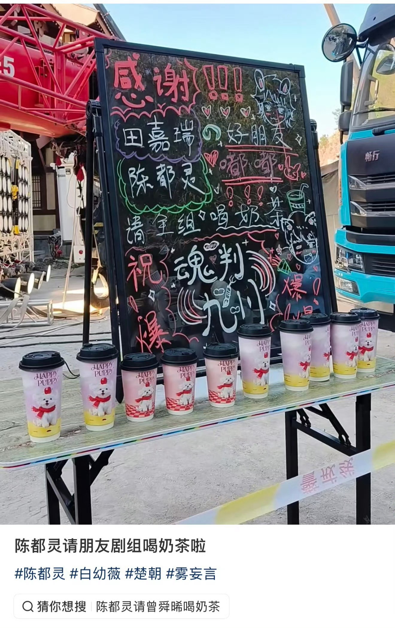 陈都灵请田嘉瑞剧组喝奶茶陈都灵请客魂判九川剧组
