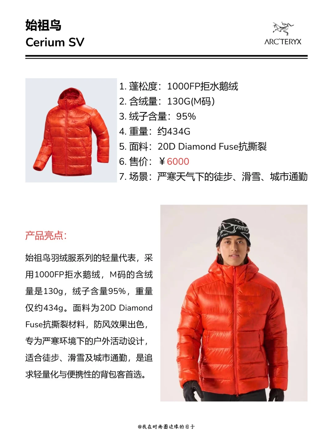 始祖鸟轻量羽绒代表!1000FP拒水鹅绒,M码含绒量130g,绒子95%,重量仅434g~20D Diamond Fuse抗撕裂面料防风一流,严寒天气徒步、滑雪,甚至日常通勤都hold住。轻量化+便携性拉满,背包客闭眼入!