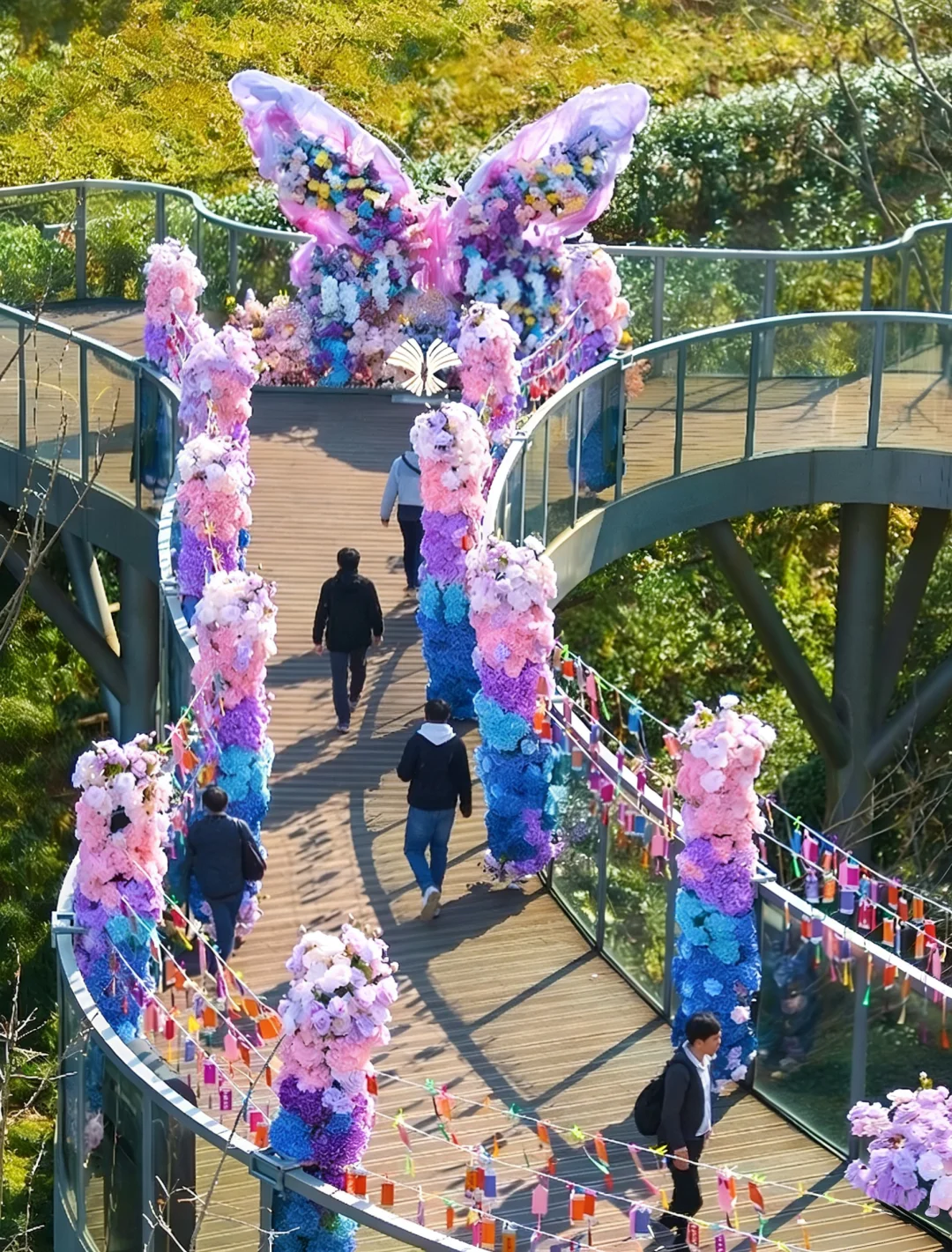 一定要逛蝴蝶中庭艺术画展,就在1号楼G层B区,每天9:00-21:00都能看。张汉生、王成宇等大师作品,保利拍卖百万起一幅,主题“自由·无界”氛围感拉满,文艺又高级,随手拍都很出片。看展后去花蝶祈福根鸿运桥挂许愿牌,湖光山色里许个愿,好运啦🈵