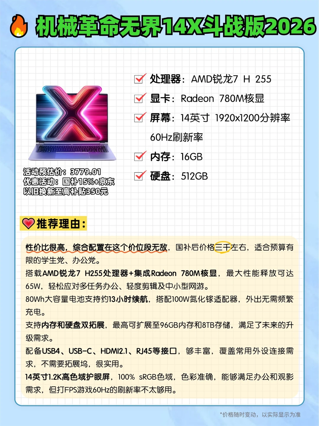价格亲民,兼顾便携、性能与续航,是学生、职场人、内容创作者的理想轻薄本。