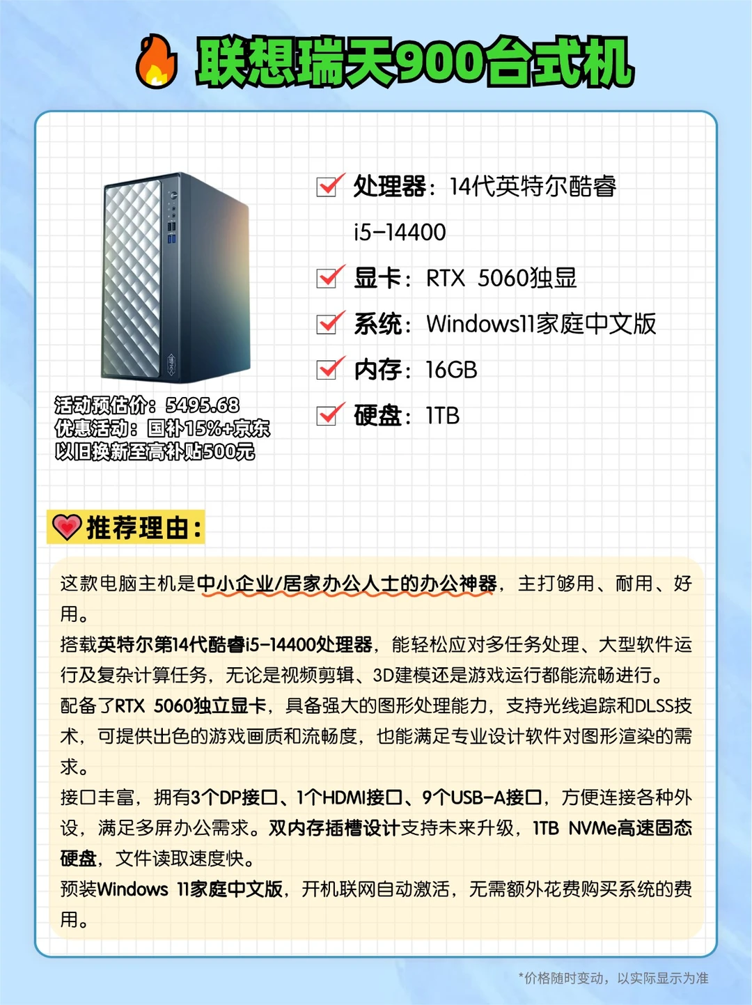 这款电脑主机是中小企业/居家办公人士的办公神器,京东入手能以旧换新至高补贴500元。