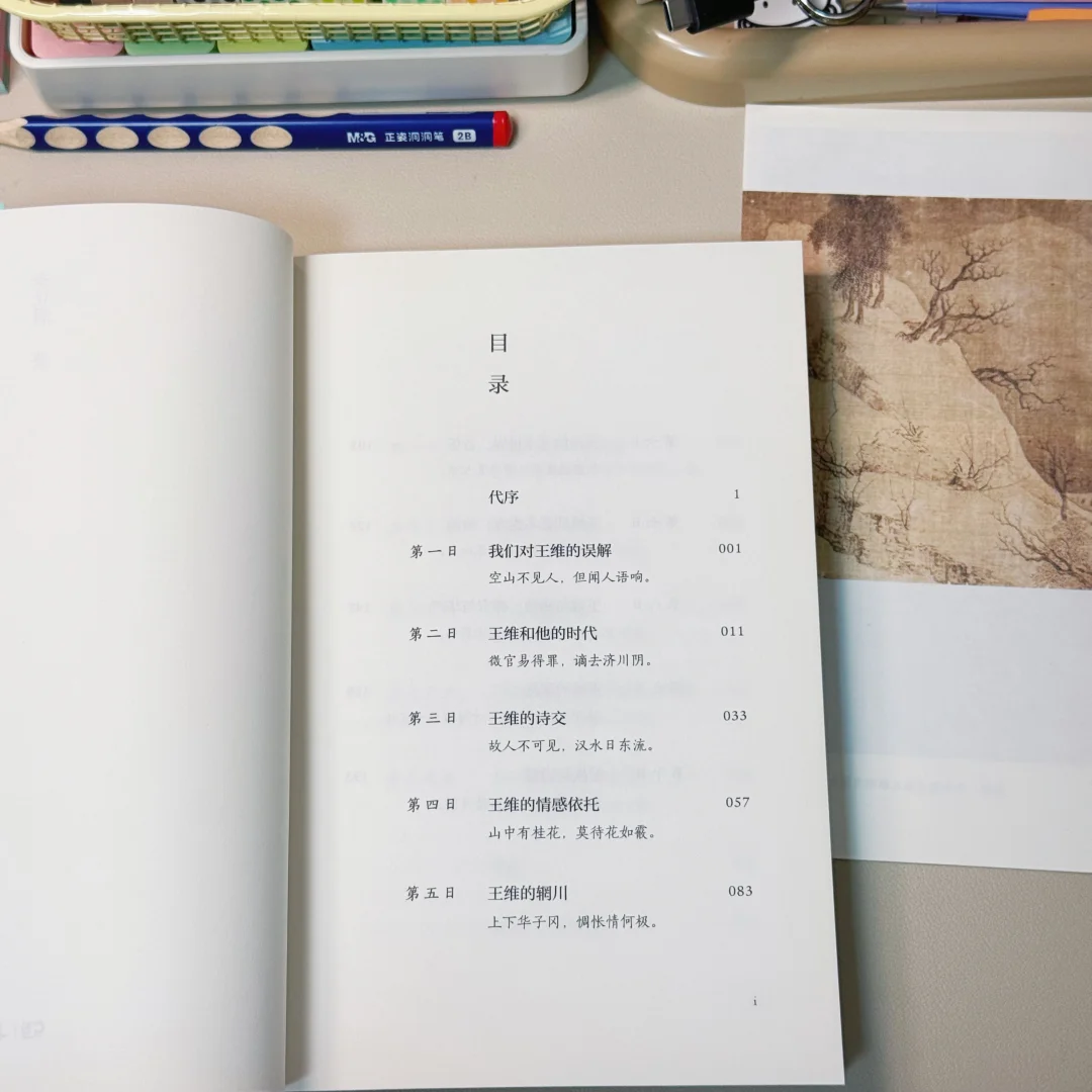 我翻了很多新书,始终找不到想读的那本,直到在我“未读书堆”的角落中看到讲王维的这本,读了《第一日》倍感欣喜,唯有诗词,唯有历史才能让人在浮躁时慢慢变的平静。