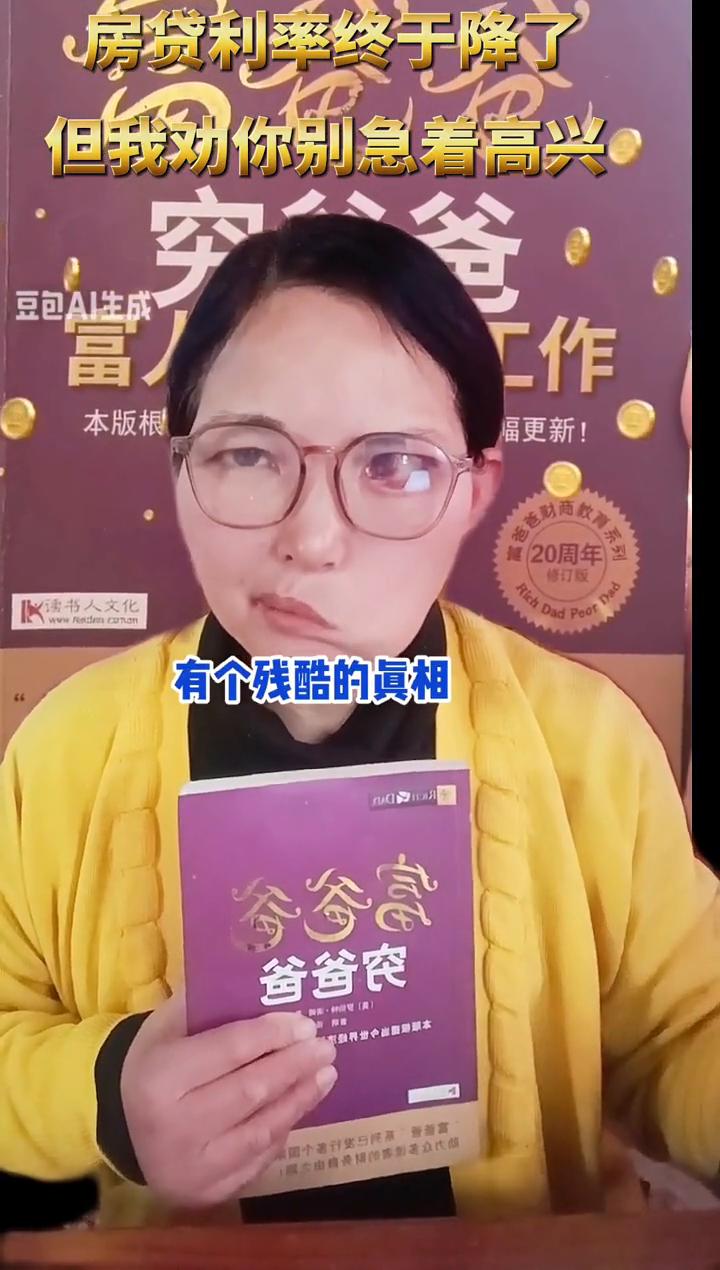 房贷利率终于降了,但我劝你别急着高兴。 报告明确说要降房贷,这对房好是天大的好消息。但你有没有想过,你的房子真的是你的资产吗?富爸爸穷爸爸里有个残酷的真相:先换思维。如果房子每个月从你口袋里掏钱,它就是负债。政策帮我们减轻了负担,想变富,但先换思维,把剩下来的钱变成真正的资产,别让你的房子套牢你的人生。 懂的人自己去橱窗下单了,点头像今晚8点,直播间来聊聊更多。