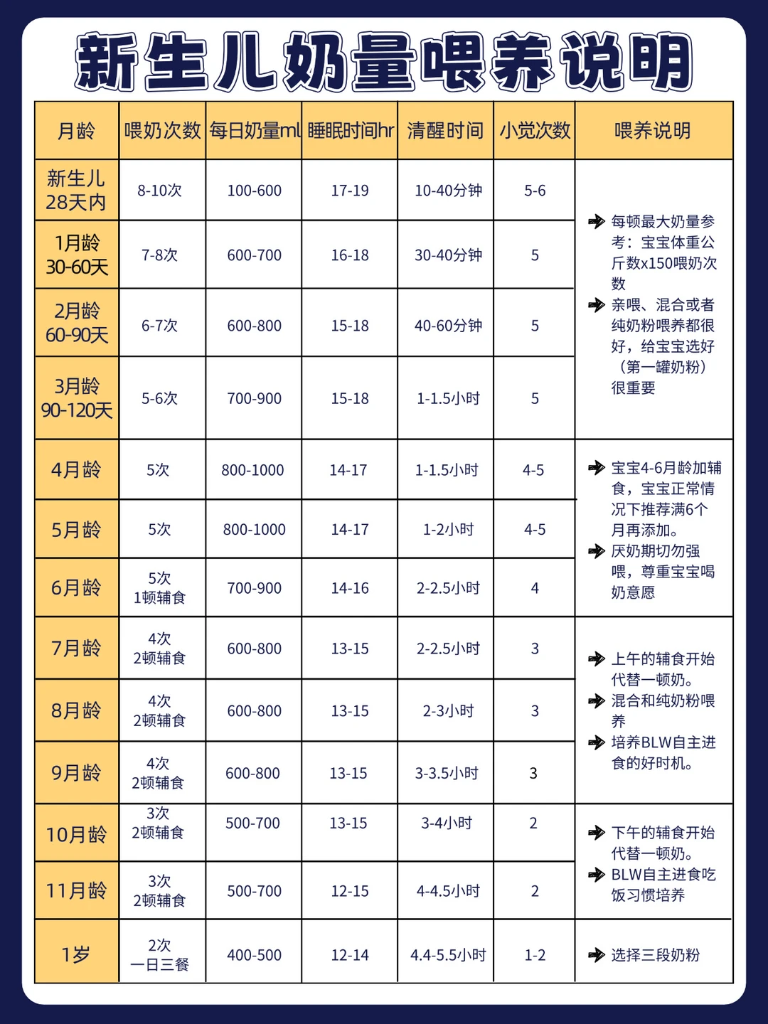 ✅ 喂养次数:1-7天8-12次,满月后慢慢减到6-8次