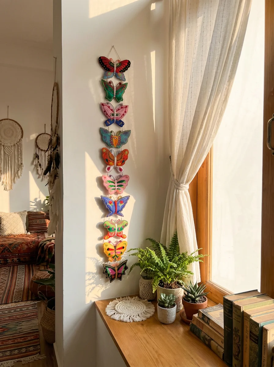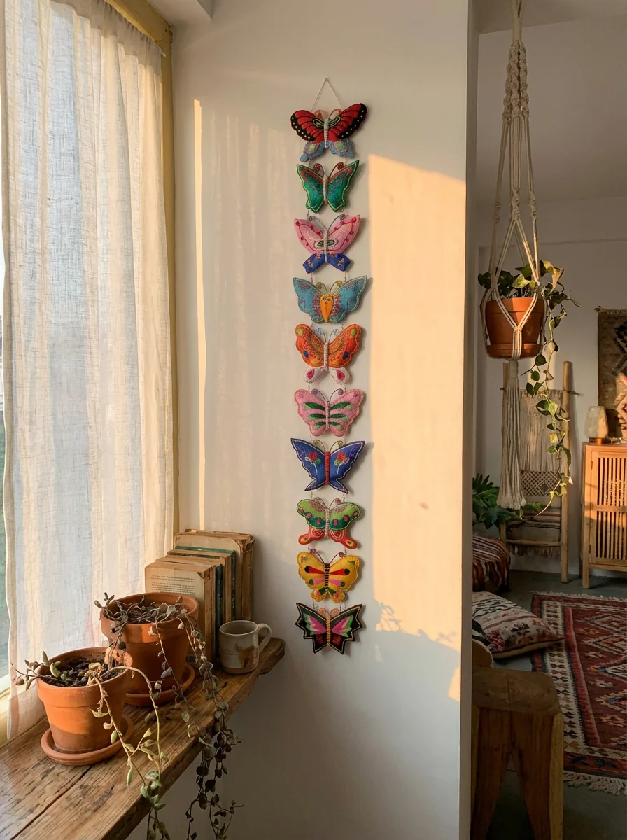 多么有活力与生机的蝴蝶串~ 太适合春天挂在家里 一年都有好兆头! 千年前传下来的民族审美 配色鲜艳却不俗气 每一只蝴蝶都不一样 分别来自不同的绣娘完成 以前它只在深山里 现在终于飞进了无数人的家 民族的审美真的值得入手 毕竟越来越少了...