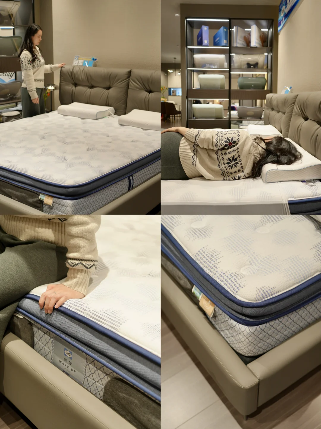 丝涟展厅的床垫看起来都很高级,店员推荐了他们家的李娜联名款床垫-焕梦。试躺了一下,真的很舒服,智能感应弹簧完整贴合人体曲线,同时又有强力均匀的承托感,填满腰部缝隙。床垫外层是天丝透气面料+双倍呵护结构,触感亲肤柔软,躺上去是干爽清凉的。再加上益爽护盾抑菌透气系统的加持,即使燥热的天气也可以整夜清爽不闷汗、防螨更安心,不愧是网球冠军推荐的产品~白天的疲惫、腰酸、紧绷感,躺下那刻就慢慢化开。用料扎实、技术硬核,还有冠军背书,在红星美凯龙选这种大品牌,安心感真的不一样,市场价29999,在红星美凯龙315嗨购节焕梦床垫加一套简约大气,有意式风格的海伦娜床架,只要19000就拿下咯~