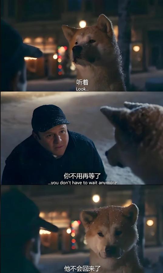 《忠犬八公》:在无望的守望中,看见超越物种的爱与时间。 故事开始在一个日本的小村庄。 一只可爱的秋田犬幼崽被装进笼子,它即将被运往美国。但还没等出发,装它的箱子上的地址标签就被无意间蹭掉了。 结果运送他的终点,就变成了美国某个小镇的火车站。 刚到火车站的晚上,教授帕克就在火车站广场偶遇了它。 帕克试着帮它找主人,但询问过一番之后也没有人认领。 眼看天色已晚,帕克不忍心丢下它,只好把这“小麻烦”先带回了家。 看到丈夫带回来这么个小麻烦,妻子当即表示不同意在家里养它。 帕克只好到处张贴“失物招领”,心想赶紧为它找到原主人。 在找到主人前,小狗得有个名字。帕克发现小狗的项圈上有个“八”的符号,他的日本朋友说,这在日语里是代表好运的“八”。 于是,帕克就为它取名“八公”。 在为八公寻找主人期间,帕克也会带着八公玩耍,教它捡球。但奇怪的是,不管帕克怎么示范捡钱,八公都不为所动。 帕克的朋友告诉他:“秋田犬不会为了取悦人而捡球,它们这么做,一定是有特殊的原因。”帕克听了,也只是笑笑,没有太在意。 日子一天天过去,八公的主人依旧寻找未果。而帕克一家,尤其是帕克,早已和八公建立了深厚的情感。 妻子看到丈夫和八公相处时的轻松状态,也心软默许了八公在家里的存在。 从此,小镇火车站前,每天都会上演温暖的一幕: 早晨,帕克去上班,八公会一路欢快地跟着他到车站,目送他进站; 下午,八公又会准时的出现在车站外的花坛上,坐得端端正正,像一座雕像。 等到帕克走出站台,它就会亲密的扑上去,一人一狗亲密地回家。 这样平静而幸福的日子,过了好几年。 这天, 当帕克像往常一样准备出门时,八公异常激动的吠叫着,甚至第一次,它主动叼起了那个从来不屑去捡的球,追着帕克到了车站。 帕克又惊又喜,他向站台上的朋友炫耀:“八公终于会捡球了!” 但八公这样的举动也没能留下帕克。 他最终还是上了车,在车窗内向八公挥手告别。 只是,帕克不知道的是,这次的挥手告别,就是他和八公之间的最后一次见面。 就在那天的大学课堂上,帕克突然晕倒在了讲台上,最后,因为心脏病离开了人世。 下午到了帕克该回来的时候,一无所知的八公,依旧准时蹲坐在老地方,尾巴轻轻摇晃,眼睛紧盯着出站口。 人流一批批出来,但没有那个熟悉的身影。它等到夜深,车站空无一人的时候,帕克才迷茫地独自回家。 然而,就是从这天起,等待帕克回家,变成了它一生的功课。 帕克的女儿把它接到了很远的新家,但它总会想方设法跑出来,长途跋涉,回到那个小镇,回到车站的花坛上,继续等待。 就这样九年时间过去了。没有人照顾的八公,步履蹒跚,毛发脏乱。 小镇上的人们都被它打动,那个曾经驱赶过它的商贩,开始主动给它食物和水; 帕克的老朋友每次看到它,都会心疼地红着眼眶摸摸它; 火车站长和热狗摊主,也一直默默地照顾着这个“忠诚的傻瓜”。 终于,在一个大雪纷飞的夜晚,八公最后一次,吃力地挪到了它坚守了九年的位置上。 大雪覆盖了它的身体。在它逐渐模糊的视线和最后的梦境里,车站的门开了,灯光温暖。 帕克教授就像从未离开过一样,穿着那身熟悉的大衣,笑容满面地走出来,亲切地呼唤着:“嘿,八公!” 八公用尽最后力气,欢快地奔向主人。在幸福的幻觉中,它终于等到了它的团聚。 这部电影,没有用复杂的情节,来渲染八公和帕克之间的感情,而是平淡的讲述,两者之间从最初的相遇,到日常的陪伴,再到那反常的叼球和之后近十年的风雪无阻。 用这一个个真实的,微小的细节来直击观众的内心。这或许就是这部电影能够打动观众的关键。