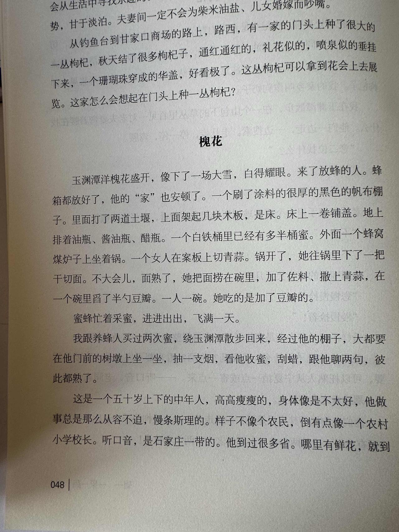 3 、人间草木 - 汪曾祺 摘自- baidu 作品贯彻"以吃载道"的创作理念,将饮食与文学价值观相联结 。全书通过对草木山川、四方食事的书写,集中体现了作者于日常细微处发现诗意与美感的生命态度,以及其通达、恬淡的人生哲学。 生活的态度与美学哲思都凝结于日常食事中,寂寞的人是因为心中没有其他的生命,没有发现一草一木的美、生命之美、生活之美。有趣的人生如同山峦的起伏,而不是只在高与低的上下两点。 ~~~~~~~~~~~ 很喜欢这句话: 一定要爱💖着点儿什么 恰似草木对光阴的钟情
