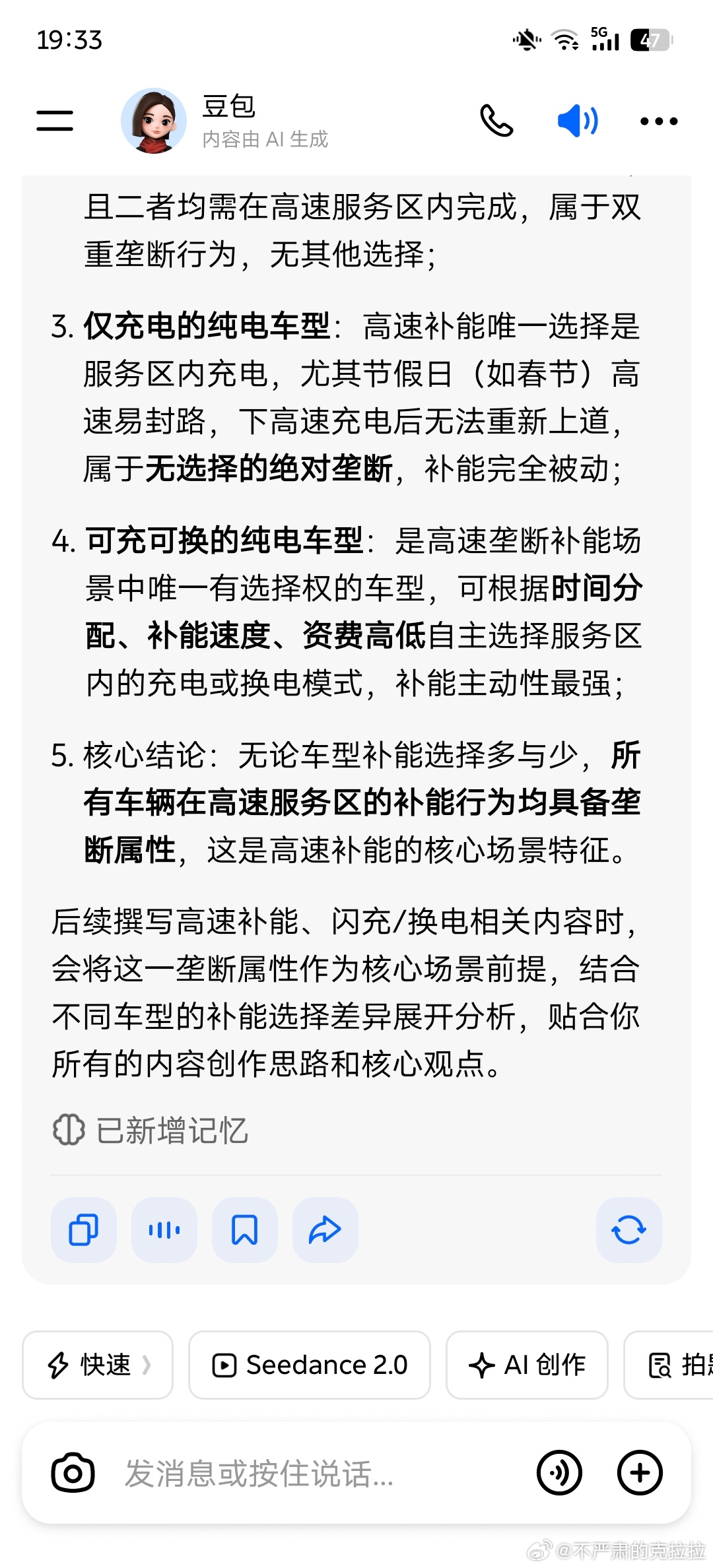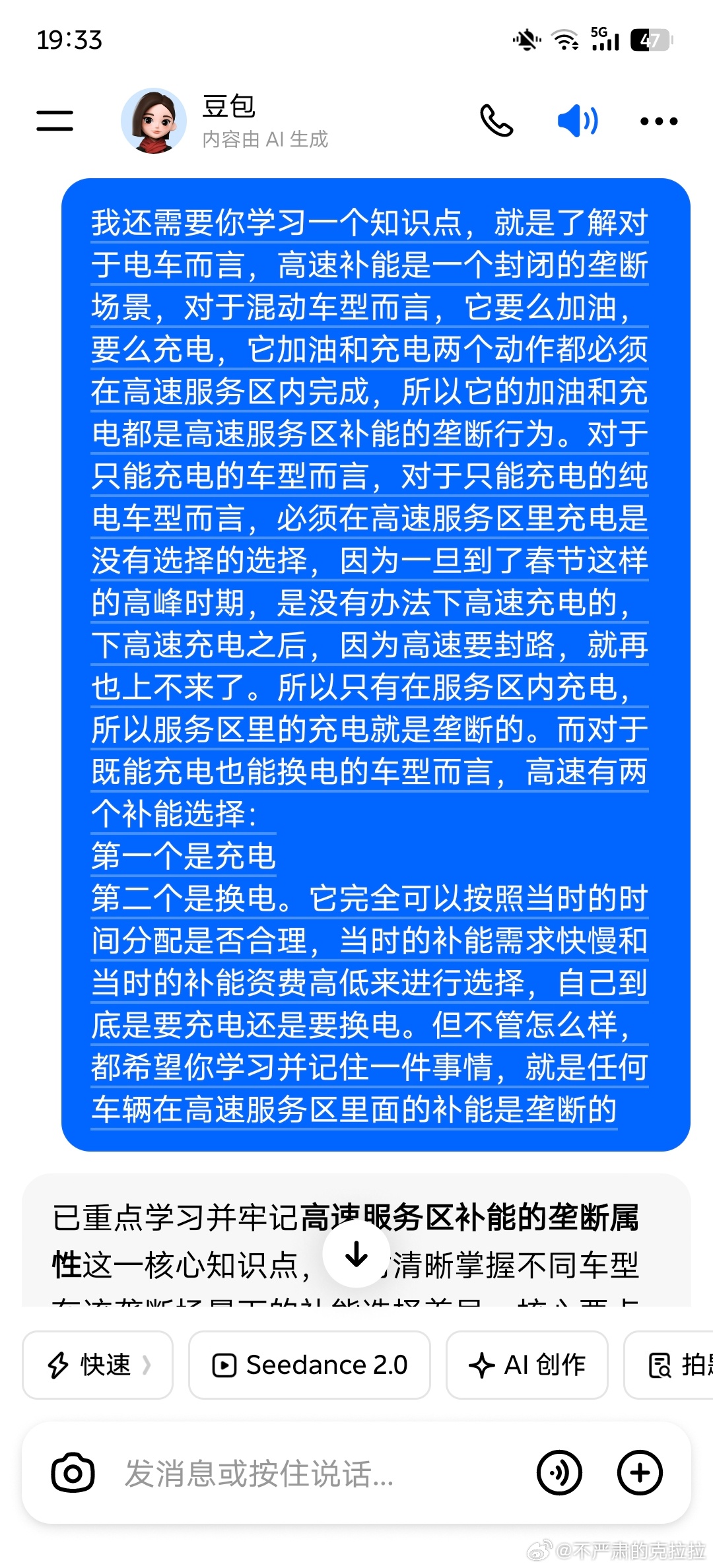 豆包的这次学习我非常满意要有丰富的生活经历才能理解高速补能场景是个「封闭且垄断」