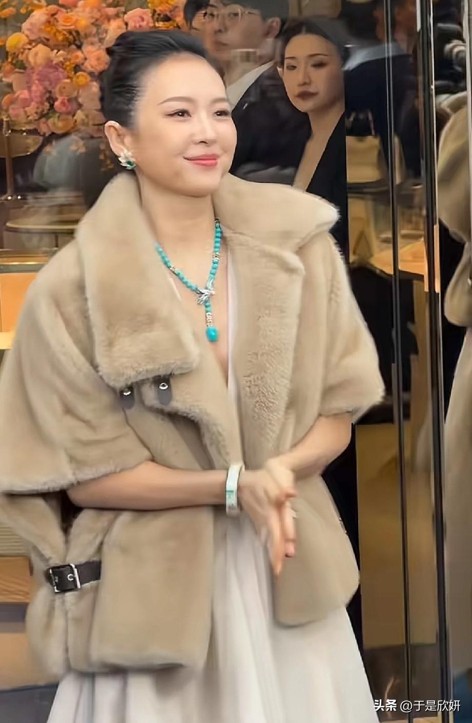 45岁章子怡最新活动生图曝光,直接美上热搜! 她一身浅驼色皮草披肩,内搭浅灰纱裙,优雅又贵气,标志性的盘发衬得颅顶超高,整个人气场全开。最吸睛的是脖子上那条绿松石项链,蓝绿色调衬得皮肤白皙透亮,搭配耳上的绿宝石耳饰,中式贵气感拉满。 现场生图怼脸拍,皮肤紧致细腻,笑起来眼角细纹都带着温柔感,完全看不出已经45岁,不少网友感叹:“这状态比20岁小姑娘还能打!” 但也有网友提出质疑: ✅吹爆派:“这才是东方美人的顶级韵味!皮草+绿松石,把贵气和温婉平衡得刚刚好!” ❌吐槽派:“皮草配纱裙太违和,绿松石项链也显老,整体像暴发户太太,完全没了当年的灵气!” 🤔中立派:“状态是真的好,但造型确实有点用力过猛,换条细项链会更高级吧?” 还有人翻出她早年红毯造型对比,感慨岁月对美人真的格外温柔,只是审美变了味。 你觉得章子怡这组造型是“封神”还是“翻车”?👇评论区留下你的看法!章子怡