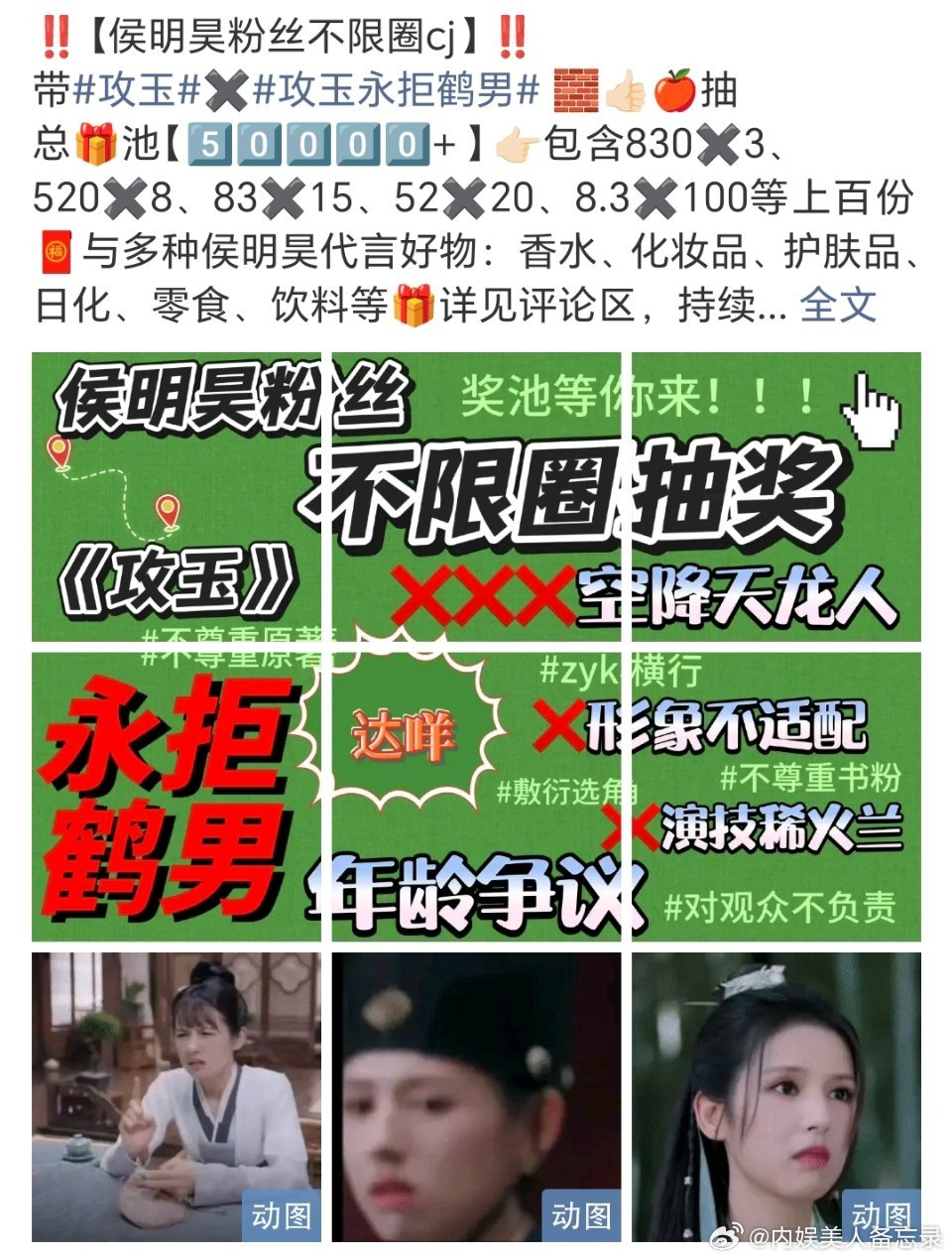 侯明昊粉丝抽奖维权永拒网传女主鹤男看了下粉丝说的几个点,确实难蚌年龄长相演技都不合适攻玉永拒鹤男