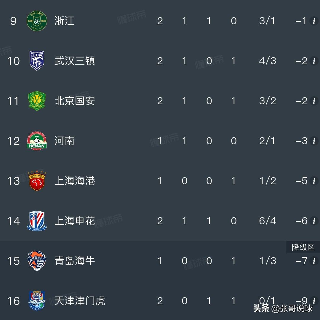 中超积分榜丨重庆铜梁龙榜首,深圳新鹏程位列前四,天津津门虎排名垫底 深圳新鹏城1-0天津津门虎,深圳队暂时排名第四,天津队两场比赛1平1负排名垫底,天津队目前积分负9分,至少还需要三场比赛负分才能清零。 津门虎本赛季不会轻松,以往赛季他们踢得游刃有余,可以轮换阵容出战,这个赛季从负10分开打,各支球队整体实力变强,津门虎可能也得为保级而战。