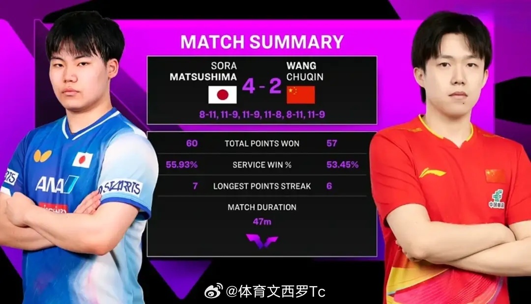 北京时间3月14日消息,WTT冠军赛重庆站,焦点之战男单1/4决赛,国乒选手王楚钦对阵日本选手松岛辉空,最终比分2-4王楚钦不敌对手,无缘晋级男单四强。下面请看详细内容。