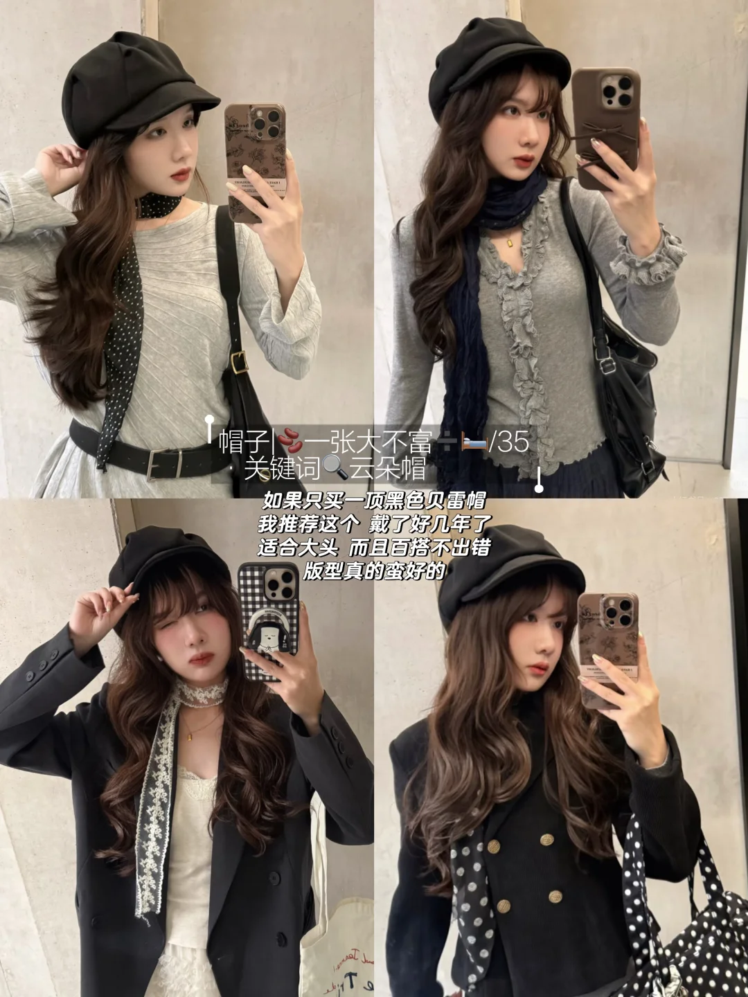 纯分享理性种草 我的头围54左右 说大不大说小不小 基本上我也是戴大头围帽子 显脸小 这一期是比较适合春秋款的帽子 毛线针织帽之前出过合集 可以🔍关键词 这一期基本上很多帽子都是反反复复搭配的 还是很百搭耐看的! 而且帽子确实会提升穿搭层次氛围感 个人觉得还是很值得入手的~