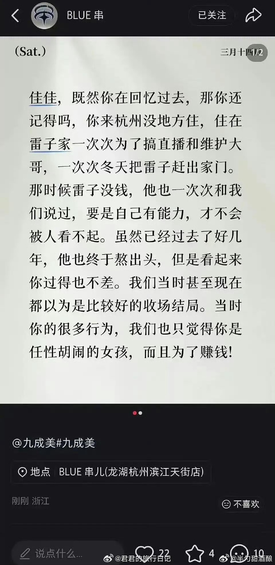 BLUE串喊话九成美我去 粉丝说了一天ai了这这这