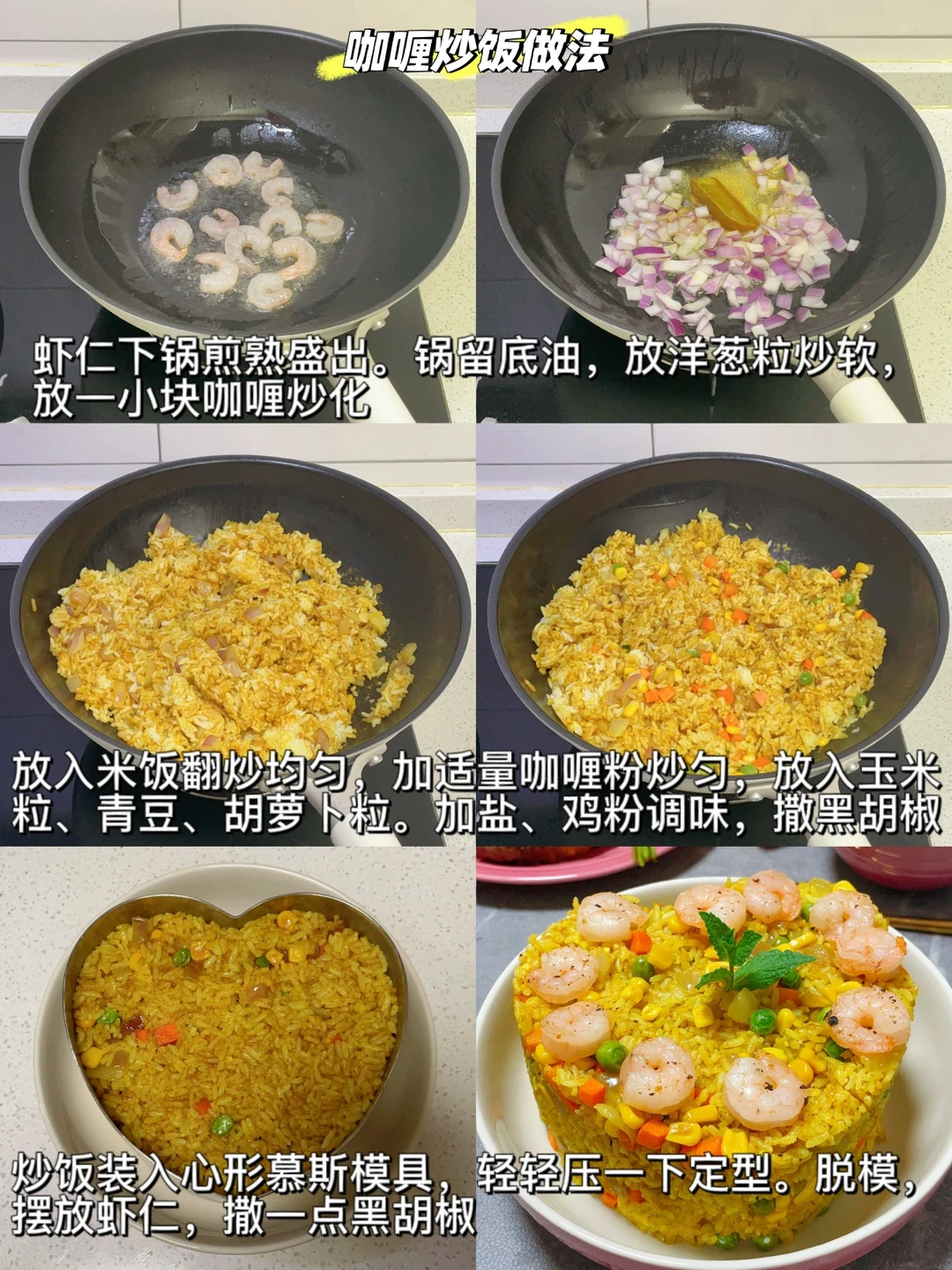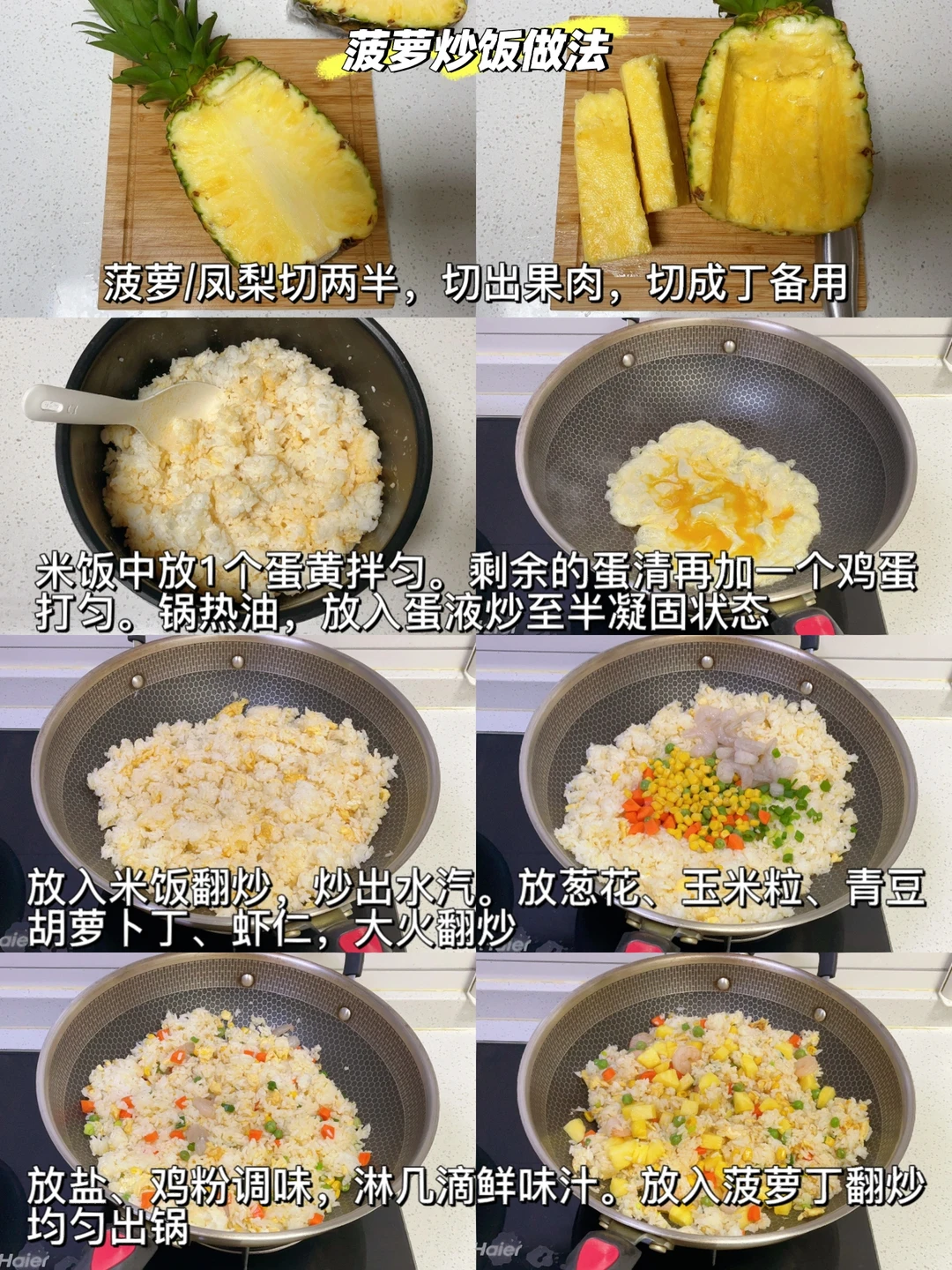 今天整理了几个既颜值高又比较家常的炒饭分享给大家,不想做饭的时候就试试它吧,总有一款适合你[赞R] 普通的炒饭也能做出满满高级感~ (教程都放在图中啦) 🌈家常炒饭合集分享: ❶【菠萝炒饭】 ❷【腊肠炒饭】 ❸【泰式海鲜炒饭】 ❹【爱心咖喱炒饭】 ❺【粽叶包香椿炒饭】 ❻【黄金蛋炒饭】