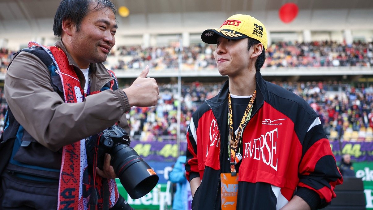 林孝埈为安东内利颁小轮胎 F1中国大奖赛,短道速滑冠军林孝埈现身颁奖,为拿下生涯首杆的安东内利送上小轮胎奖杯。冰上王者与赛道新星同框,跨界同框超有排面