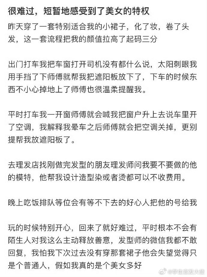 很难过,短暂地感受到了美女的特权