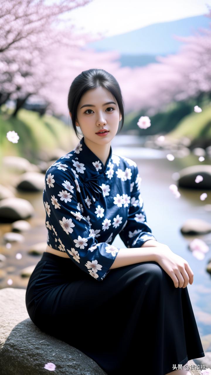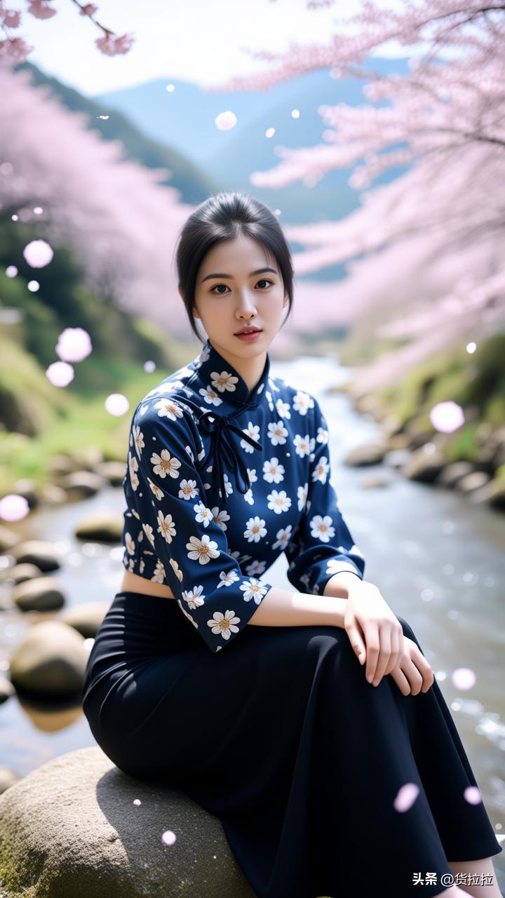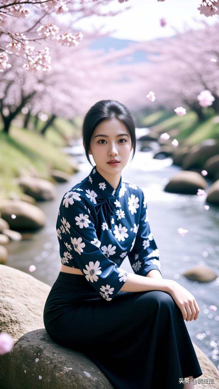 一个女孩坐在河边的石头上。你知道她在想什么吗