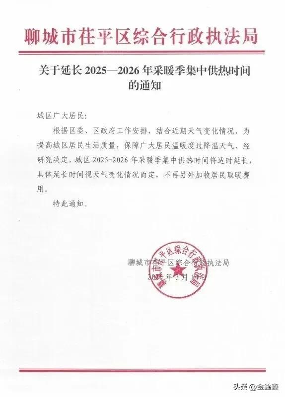 暖心!山东多地官宣:免费延长供暖,别急着关阀门! 倒春寒来了?别担心,山东的暖气管够!3月15日停暖?多地已官宣“失效”!为应对近期雨雪降温,济南、烟台、临沂、聊城等多地紧急通知:集中供暖免费延长! 济南中心城区延至3月23日零时,招远甚至延至3月31日!最关键的是:延长期间,居民用户一分钱不多交,全由政府财政兜底!非居民用户则需协商缴费。 目前,济南、海阳、肥城、郯城、栖霞、招远等地均已发布正式公告。这波“看天供暖”的操作,不仅暖了屋子,更暖了人心。你在的城市延长供暖了吗? 信息来源:闪电新闻、大众网、济南市住建局、各地住建局公告
