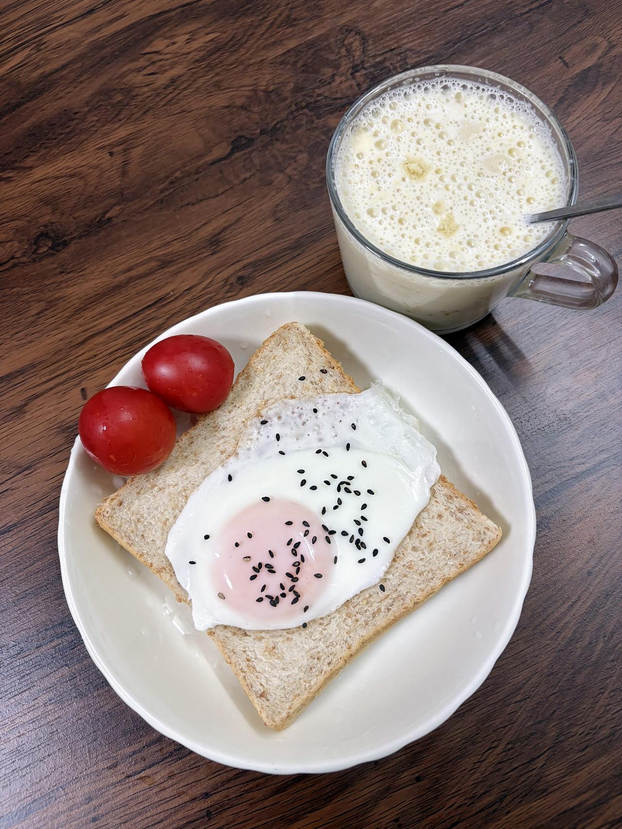 自律减脂健康餐,目标95斤,加油 今日减脂早餐:全麦面包+无油煎蛋+番茄+豆浆