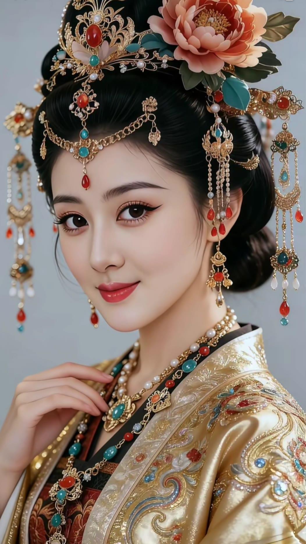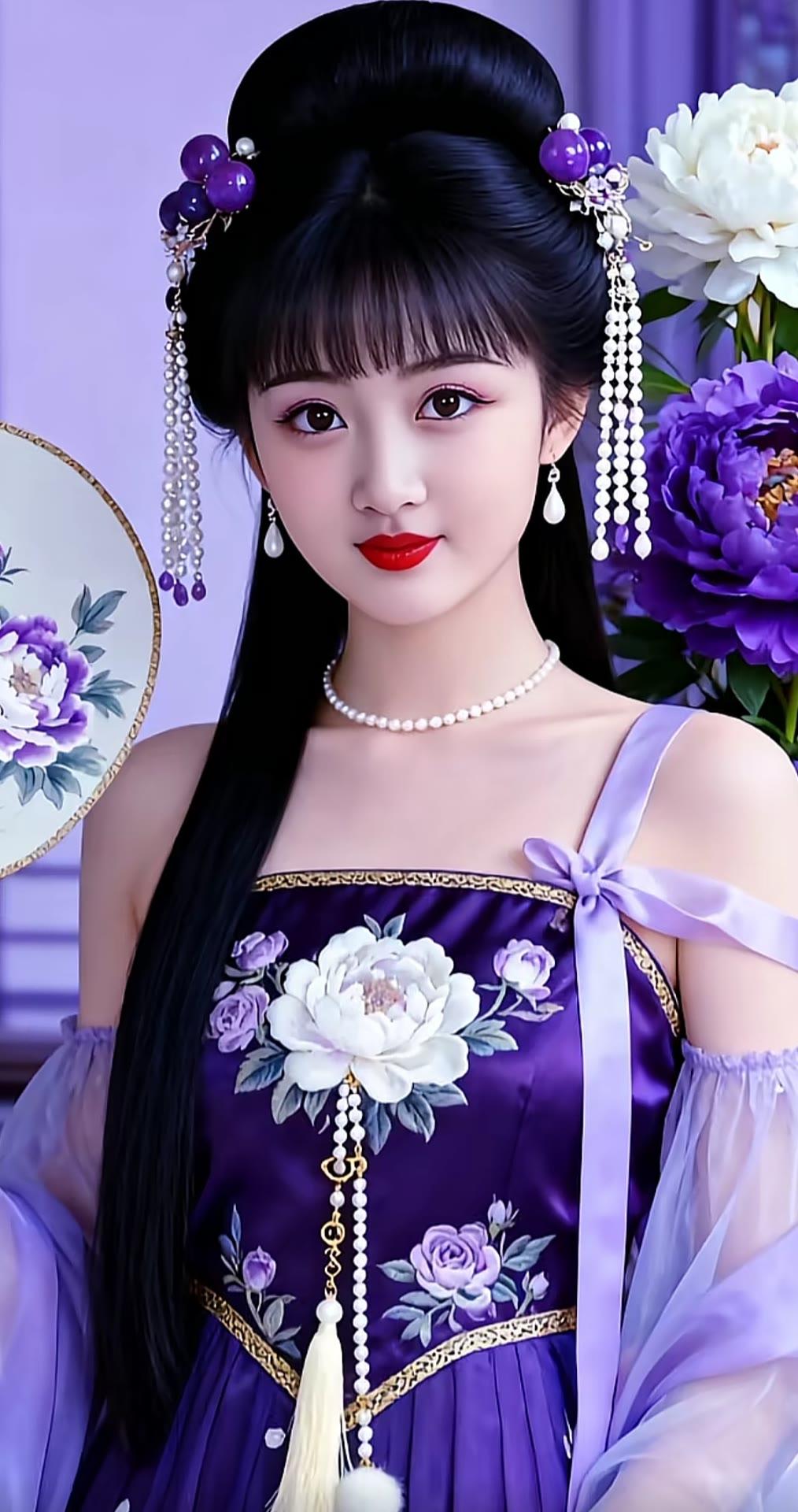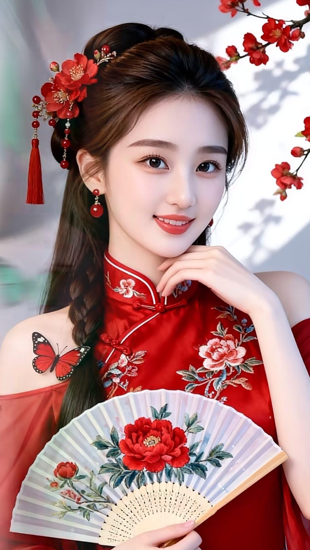 古风少女,花簪双髻,红唇轻启,宛如画中人。