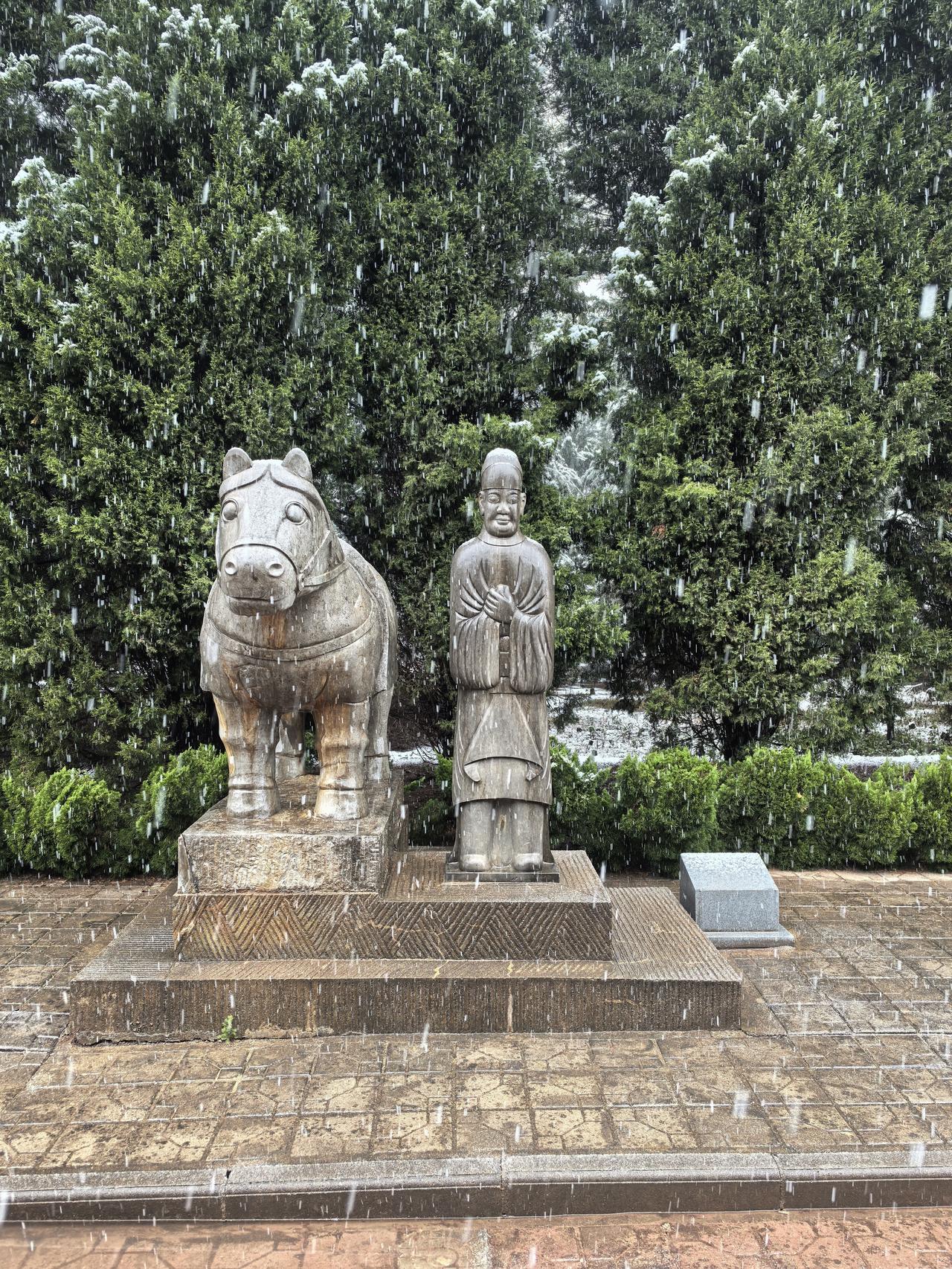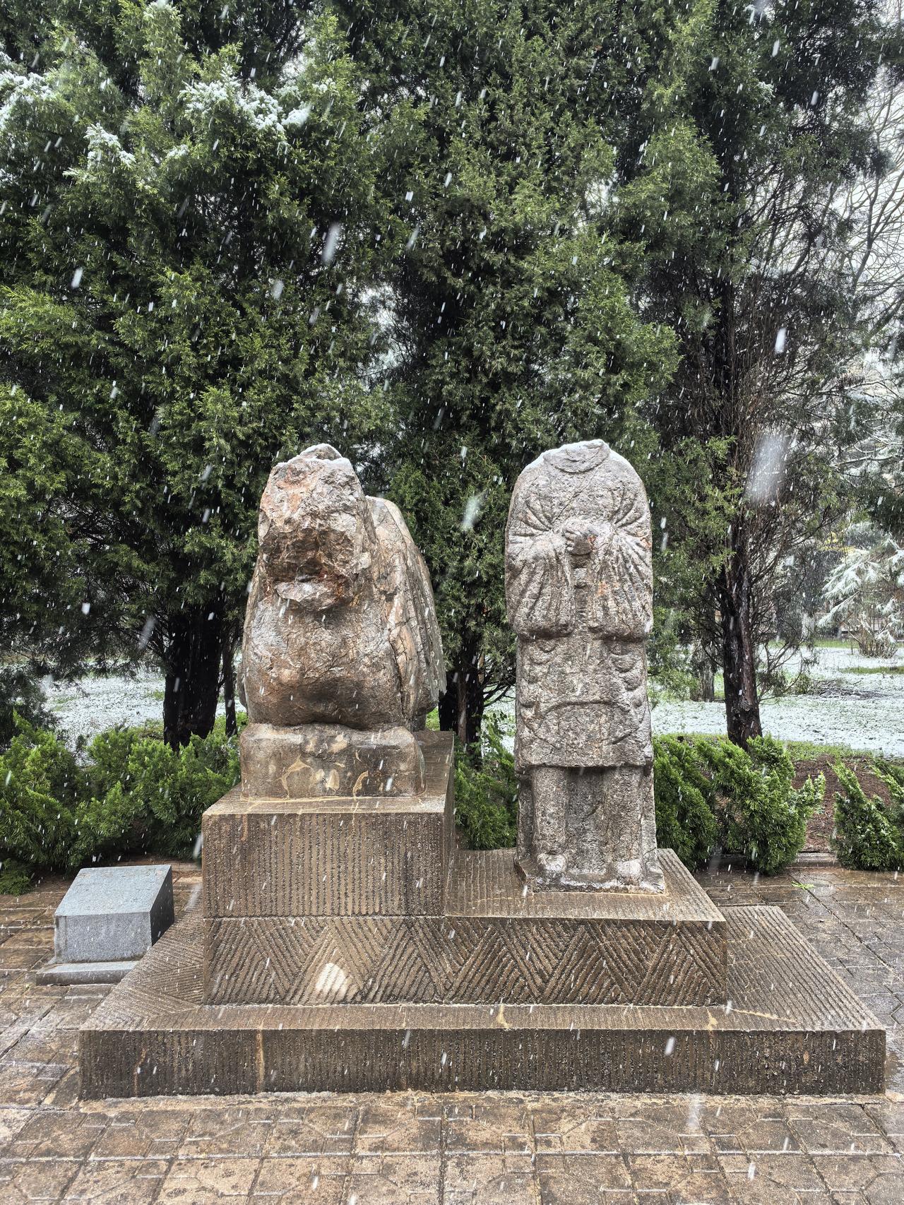 〖大唐秦王陵前神道两侧的石雕,是不是有一部分是现代的?〗 石雕两侧的石雕,有一部分是残损的,应该是陵墓前原有的。 还有一部分完整的,石狮、石狗,看到那形象,真的有点出戏。 石狗还是第一次在帝王陵墓前见到。 石狮也有别于其他唐代墓葬前的威严好大,甚至有点像卡通形象?奶凶奶凶的[祝福] 有没有懂行的朋友,能否告知下秦王陵前的石雕到底怎么回事? 有哪些石雕是现代的作品?
