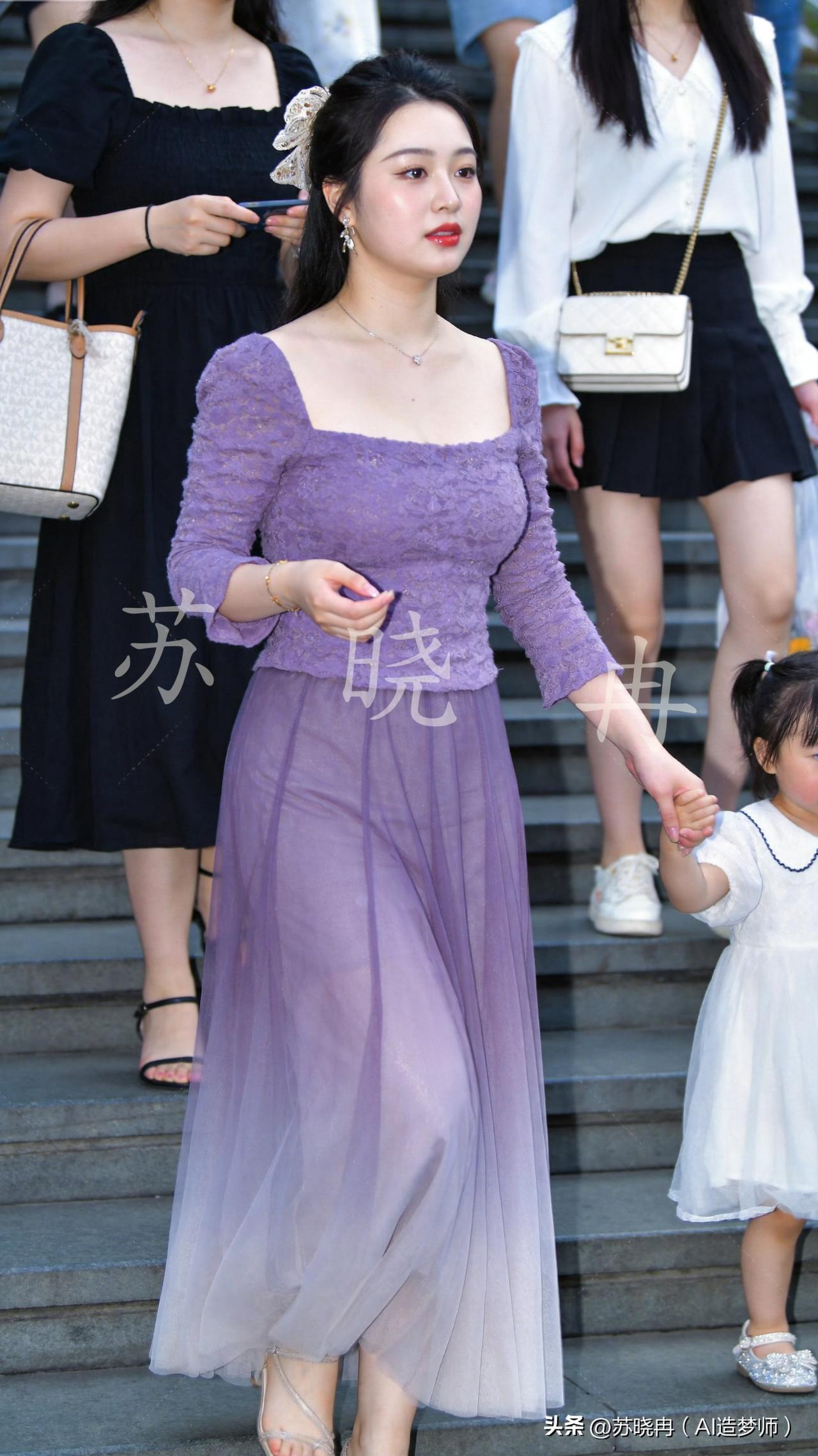 许嵩诚不欺我,紫色真的很有韵味 都说当了妈,就该放下打扮,一心顾家过日子。可当她穿上紫色裙子,牵着女儿下楼的那一刻,才真正懂了许嵩那句“妹妹说紫色很有韵味”。 原来当了妈妈,也可以温柔,也可以好看,也能守住心里那点小浪漫。 许嵩诚不欺我,紫色真的很有韵味,这几套紫色衣裙天天换着穿,陪着孩子一起温柔,就是最踏实的幸福。 母女相伴 紫裙曳影下阶台, 稚手牵衣笑眼开。 莫道芳华随岁减, 温柔抱香自归来。 愿每一位妈妈都能在平凡的生活里保持热爱与温柔,用心陪伴孩子成长,用爱守护家庭幸福。以积极向上的生活态度,传递温暖与正能量,在柴米油盐中活出属于自己的光彩,让家庭和睦、社会和谐,共同践行新时代的美好风尚。 写真人像摄影 苏晓冉 原创诗词