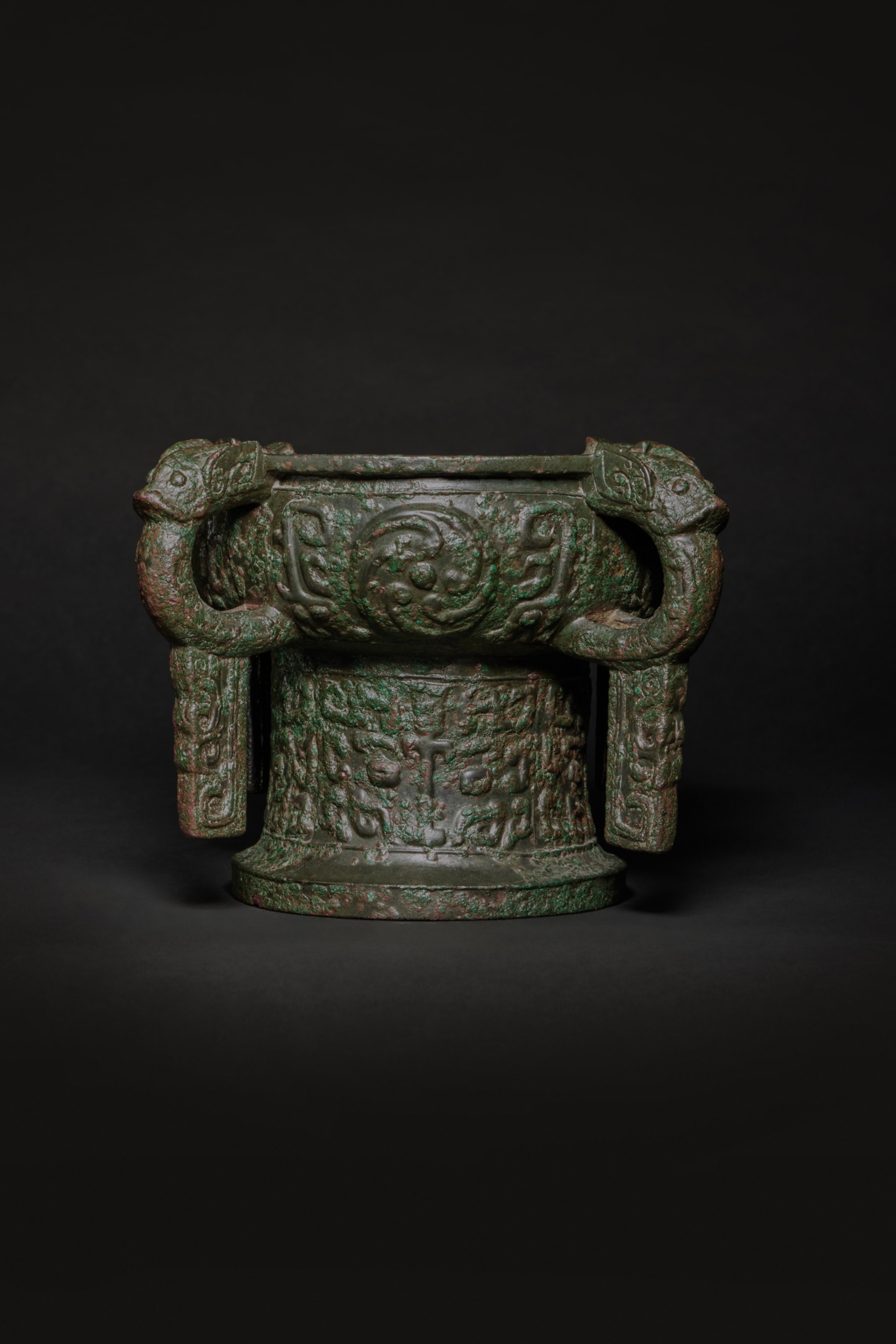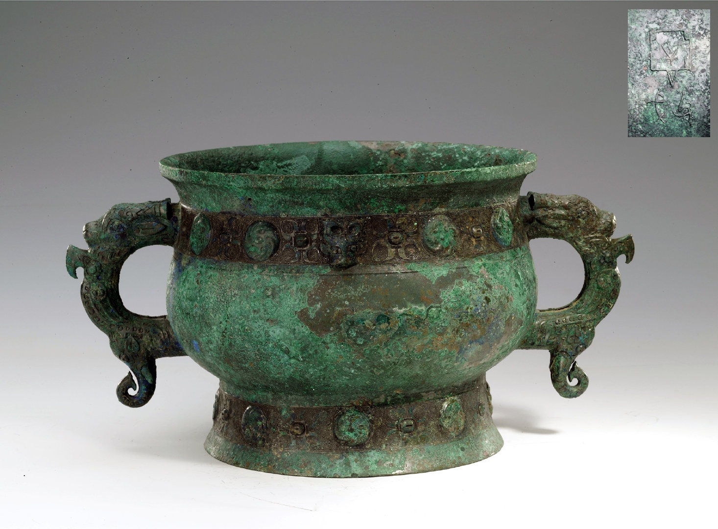 每天一件青铜器 今年苏富比纽约春拍青铜器扛鼎拍品是山中商会旧藏的西周早期:亚禽父癸簋. 西周早期流行的高等级四耳高圈足簋.类似形制如保利的历簋,国博的宜侯夨簋等,但高圈足的又少之又少.铭文“亚禽父癸簋”的族徽也见于台故的商晚期印章,山西翼城霸伯墓葬出土簋.可惜这件簋传世油亮,但锈不好看