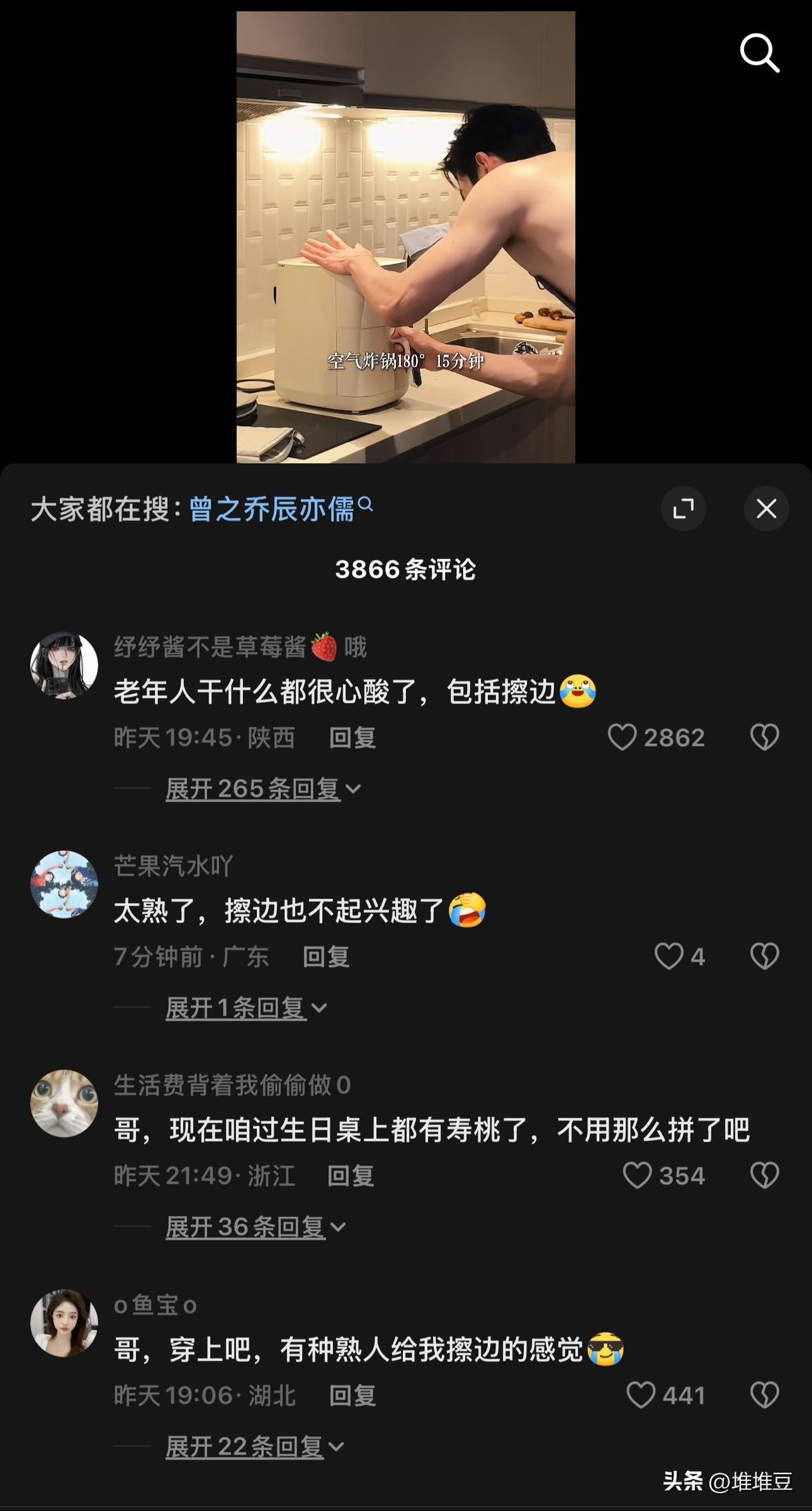 笑不活了!辰亦儒裸身做饭被嘲“老年人擦边”,评论区句句扎心 辰亦儒一段深夜厨房视频彻底玩脱,赤裸上身系围裙做饭,本想走性感居家风,结果被网友狠狠吐槽。 视频里他专心做美食,多角度秀出肌肉线条,本以为是沉浸式做饭,结果评论区直接翻车,句句真实又扎心: • “老年人干什么都很心酸,包括擦边” • “太熟了,擦边也不起兴趣” • “哥,穿上吧,有种熟人给我擦边的感觉” 作为飞轮海成员,辰亦儒一直以自律、冻龄出圈,可这次明显用力过猛。网友不是嫌他身材不好,而是看着童年偶像走擦边路线,实在违和又尴尬。 他想靠身材博眼球、赚流量,却忘了自己在观众心里早已是“熟人长辈”,性感不起来,只剩刻意和勉强。 这也戳中内娱一个现实: 中年男星想翻红没错,但擦边不是捷径,熟脸更不适宜搞低俗。 岁月带来的是情怀,不是卖弄的资本。与其硬凹性感,不如好好靠业务、靠情怀圈粉,才不会让青春滤镜碎一地。 辰亦儒 辰亦儒擦边 中年男星 娱乐圈真实