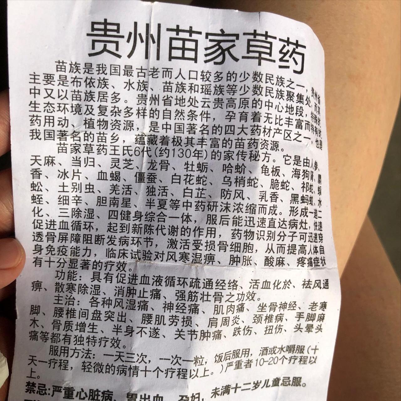 揭穿骗局!所谓 “苗族祖传苗药”,全是害人的化学狠活 打着 “苗族祖传秘方”“纯天然苗药” 的幌子,实则偷偷添加激素、止痛药等化学药剂,这种丧心病狂的假药骗局,正在疯狂坑害无数人! 这些骗子精心包装,穿民族服饰、摆草药道具,把三无假药吹成 “根治风湿、痛风” 的神药,专挑中老年群体下手。他们利用大家对民族传统医药的信任,把成本几块钱的化学混合物,卖到天价牟利。 看似一吃就见效的 “神药”,全是西药在硬撑:非法添加吡罗昔康、醋酸泼尼松等成分,短期止痛消肿,长期服用会引发肝肾损伤、激素依赖、消化道出血,不仅治不好病,还会掩盖真实病情,拖垮身体。 更可恨的是,这些假药不仅谋财害命,还严重玷污了正宗苗医药的声誉!苗族医药是传统医药瑰宝,绝非骗子敛财的工具。 别再轻信 “祖传秘方”“速效根治” 的鬼话!治病请走正规渠道,遇到此类假药骗局,立刻拨打 12315 举报。拒绝伪偏方,守护自身健康,更别让无良骗子抹黑民族医药!