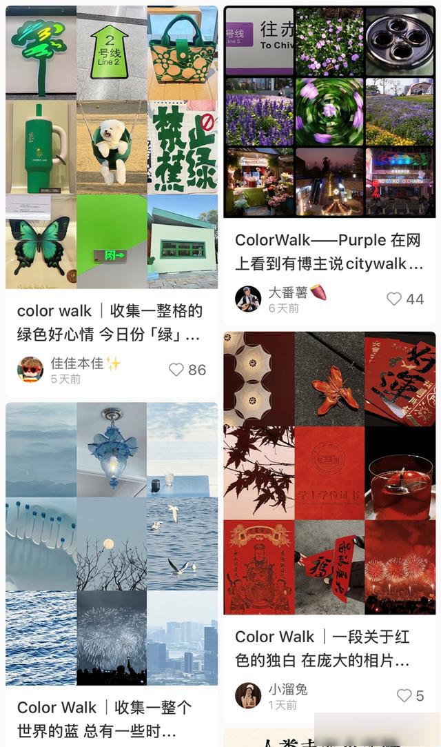 而从CityWalk走向ColorWalk,更体现出青年群体心态的细腻演进。如果说CityWalk更多是向外探索,在开阔的城市风景中寻求松弛,那么ColorWalk则从宽泛漫步转向专注寻找,从“看世界”收敛为“守内心”。这一变化,或也折射出年轻人从追求松弛感,转向寻找确定感、可控感,他们不再满足于走马观花式的打卡,而是希望以更聚焦、更内敛的方式,重建内心秩序,在微小的美好中积累踏实的幸福感。