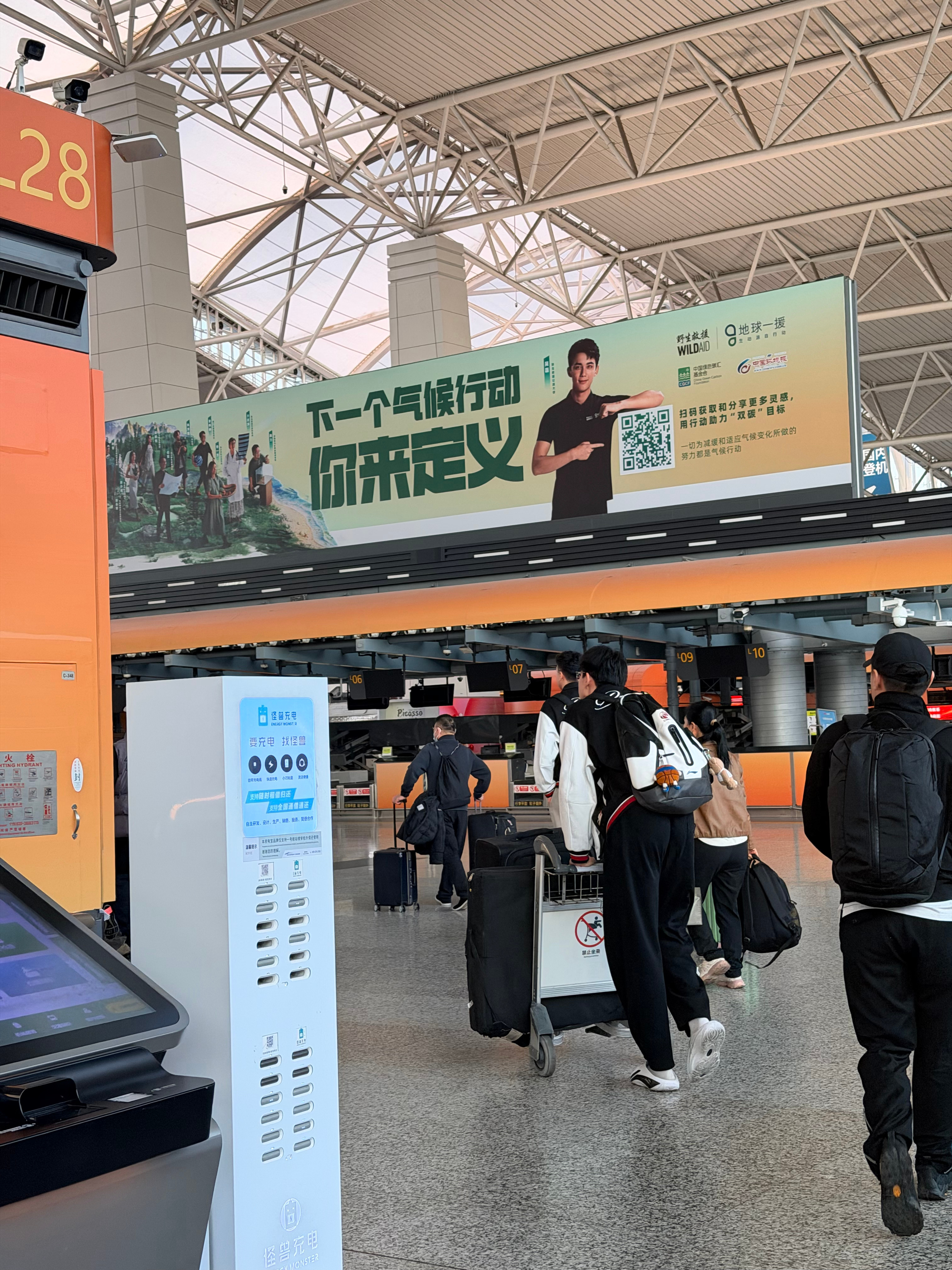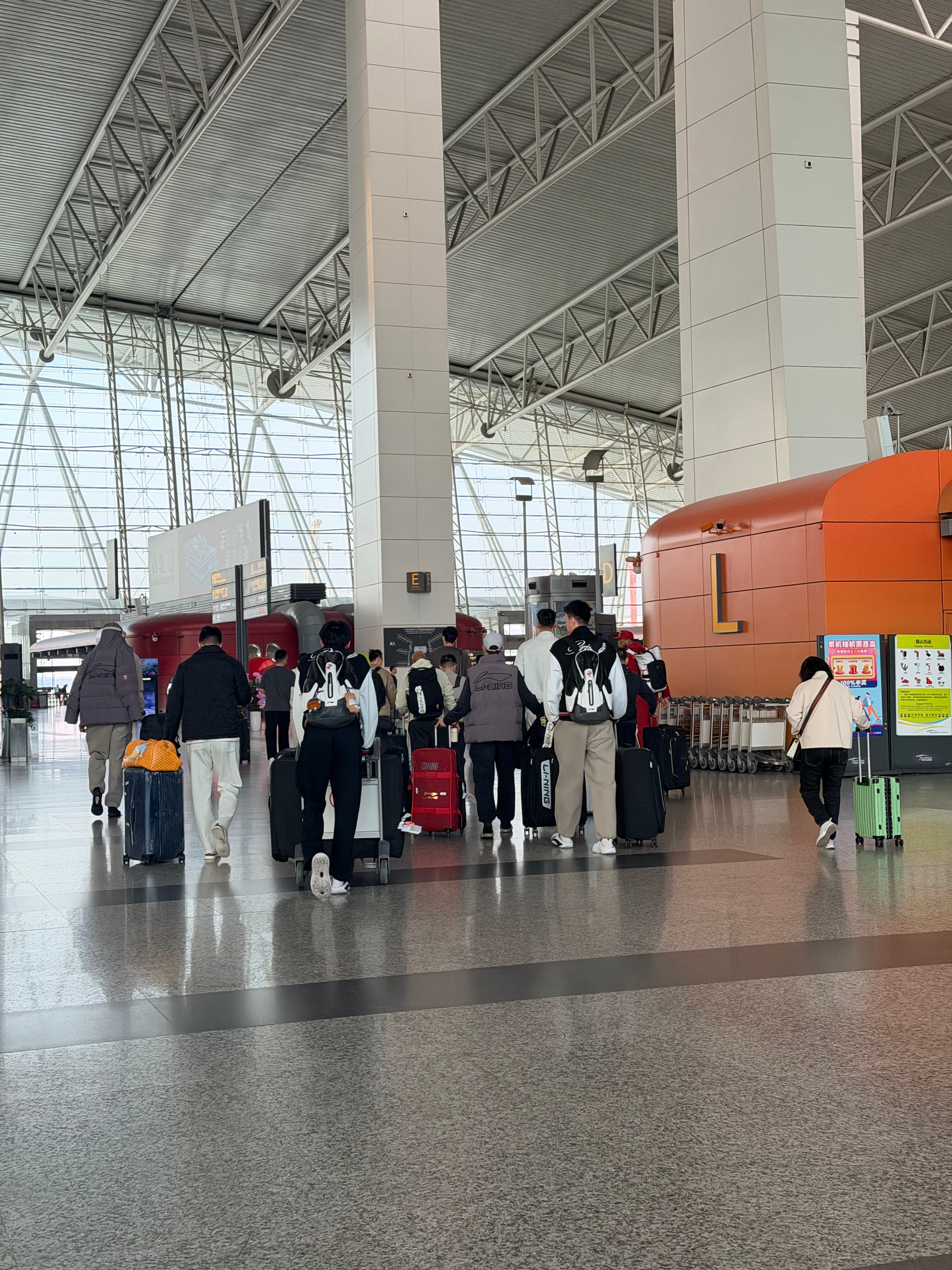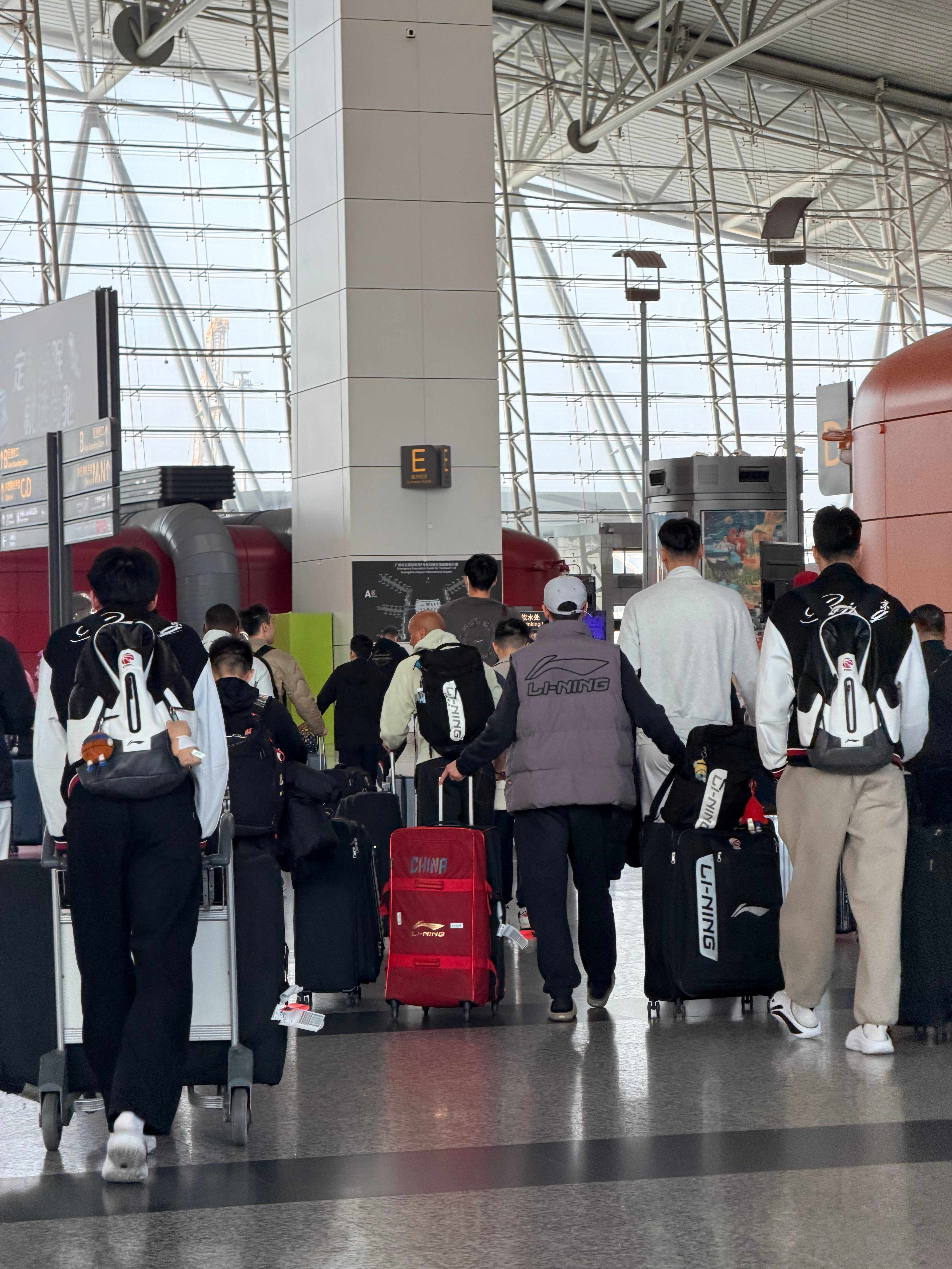 我今天跟广东宏远华南虎篮球队的队员一架飞机耶,他们真的好高啊,长得像棵树一样,第