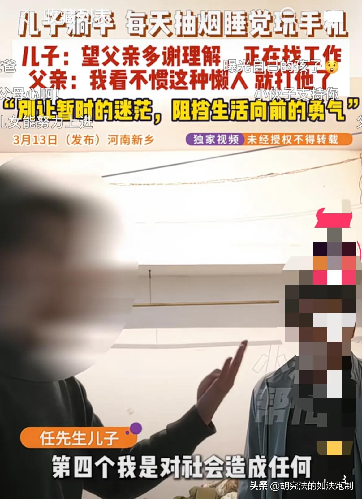 这就是当父母的悲哀!河南新乡,一男子大学毕业不去找工作,整日在家抽烟睡觉玩手机。父亲看不下去了,就说了儿子两句。谁知儿子不听,还认为父亲不理解他,父子俩也闹了矛盾。父亲没办法,找来记者协调。谁知刚一见面,男子甩出“三连问”,把记者也给整懵了。 眼瞅着孩子已经到了成家立业的年纪,却整日待在家里,不是抽烟就是睡觉,睡醒了就玩手机。任先生打又打不过,说又说不得,实在委屈极了。 任先生有个25岁的儿子,从小到大,任先生对这个儿子几乎是有求必应,虽然家庭条件很是一般,儿子的学习成绩也并不怎么突出,可任先生还是咬紧牙关供儿子上大学。 在任先生看来,只有知识才能改变命运。哪怕是自己苦一点累一点,也要给孩子提供受教育的机会。 尝够了社会的人情冷暖,任先生知道普通人要是想翻身的话,实在是太难了。 这么多年来,任先生始终咬牙坚持,好不容易等到儿子考上大学,大学毕业了,没想到新的问题却接踵而至。 正常来讲,大学毕业之后肯定是要找工作的。没想到,任先生的儿子却直接回到了家里。 刚开始任先生也没好说什么,就当是儿子刚刚完成了学业,还并不适应社会的节奏,留出一段时间来,让儿子好好的放松放松,这样很好理解。 可接下来的事情,让任先生有点坐不住了。 儿子整天睡到太阳高高升起才想着起床,吃完饭就抱着手机玩手机,一边玩着手机,一边抽着烟。 任先生倒不是心疼儿子,在家不挣钱还花钱,主要是他看到儿子整天头发乱糟糟的,因为长时间睡眠不规律,黑眼圈也一天比一天严重,整个人的状态非常差,内心自然非常着急。 人活一张脸,树活一张皮。 年轻正是应该奋斗的时候,可自己的儿子却整天躲在家里,大门不出二门不迈。 这种事情要是被别人知道了,肯定以为他的儿子就是一个懒汉。 名声臭了,以后找媳妇儿也是个难题。 儿子的这种状态持续了一个多月,任先生实在看不下去了,于是便打算跟儿子沟通沟通。 可儿子毕竟也不是小孩子了,怎么可能会听父亲的唠叨呢?结果就是,任先生这边刚一开口就被儿子怼了一句。 任先生想起来自己这么多年的辛苦付出,儿子却这般不争气又懒,气不打一处来便打了儿子。 这一打不要紧,儿子算是彻底躺平了! 眼看这样下去不是办法,任先生也顾不得家丑不可外扬了,只能找来记者对儿子进行劝说。 让记者没想到的是,两个人刚一见面呢,任先生的儿子直接甩出来了三连问。 “我承认我自己有点懒,可这样违法吗?” “我承认我选择了躺平,我违背公序良俗没有?” “我麻烦了别人没有,我有没有对其他人造成影响?” 到底是上过大学的人,一张口就和普通人不一样,就连见多识广的记者,一时间也没反应过来。 有人调侃,就凭这个小伙子说出来这么几句话,也绝对比好多人强了不少,一定要加油! 一个人可以没有文化,但是绝对不能懒惰。要对自己的父母负责任,要有一颗感恩的心,即使父母托举不了孩子,但也要懂得孝道两个字。 不违法也不违反公序良俗,也没有给他人造成影响,那么我想问一句,家里的电费你有没有出?家里的饭你有没有吃?人怎么可以能厚颜无耻到这种地步呢? 《民法典》第26条规定,父母对未成年子女负有抚养、教育和保护的义务。成年子女对父母负有赡养、扶助和保护的义务。 任先生的儿子已经年满25周岁,已经是一个能扛起生活重担的成年人了。可他倒好,不思进取,整天赖在家里,把父母的期盼完全当成了耳旁风。 好在经过记者的苦苦劝说,任先生的儿子也终于意识到了自己的不对,表示会积极的去找工作。 对此你怎么认为?