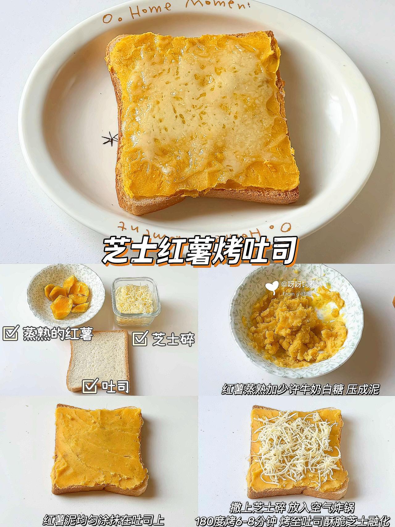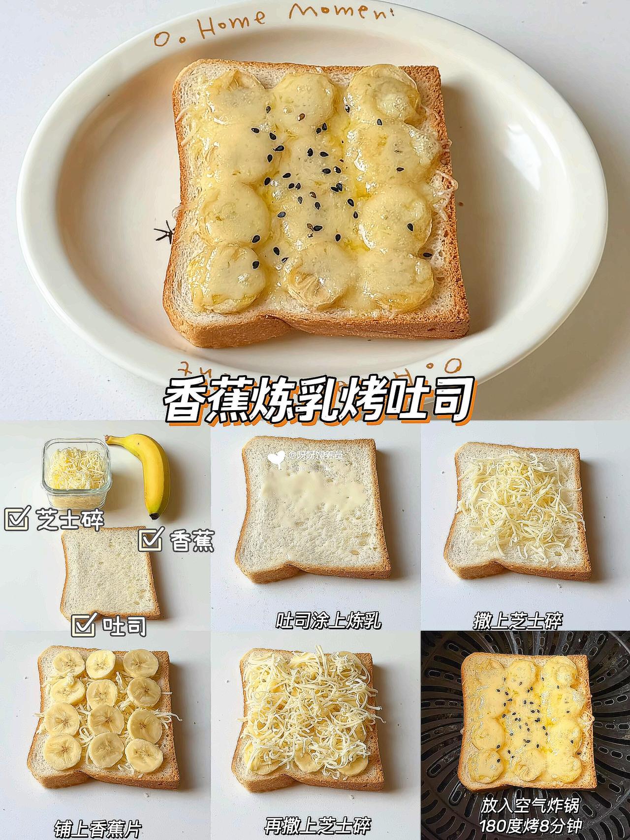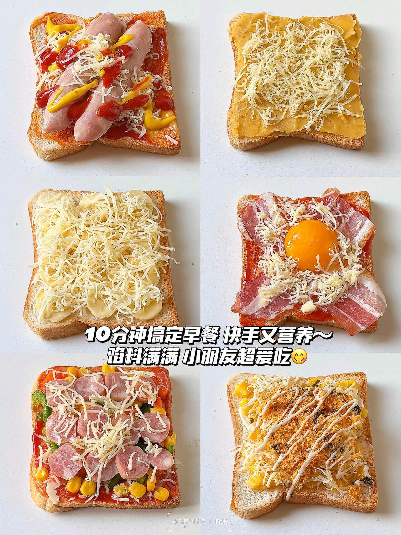 谁懂啊!早上多睡10分钟的幸福🥹 这款懒人烤吐司简直是打工人的续命神器💪 外酥里嫩还会拉丝🧀️ 比面包店买的还香! ✨6种搭配公式直接抄作业: 1️⃣培根鸡蛋👉🏻蛋白质拉满 2️⃣芝士红薯👉🏻奶香糯叽叽 3️⃣香蕉炼乳👉🏻甜党必入 空气炸锅/烤箱都能做🔥 180度烤出焦脆边边是关键‼️ 搭配牛奶就是满分早餐💯 💡生活再忙也要好好吃早餐呀 那些被食物治愈的清晨🌅 都是对自己最好的温柔~