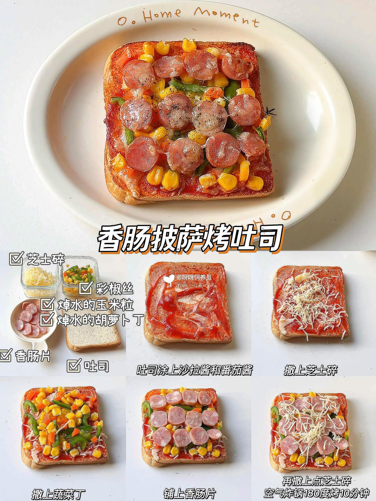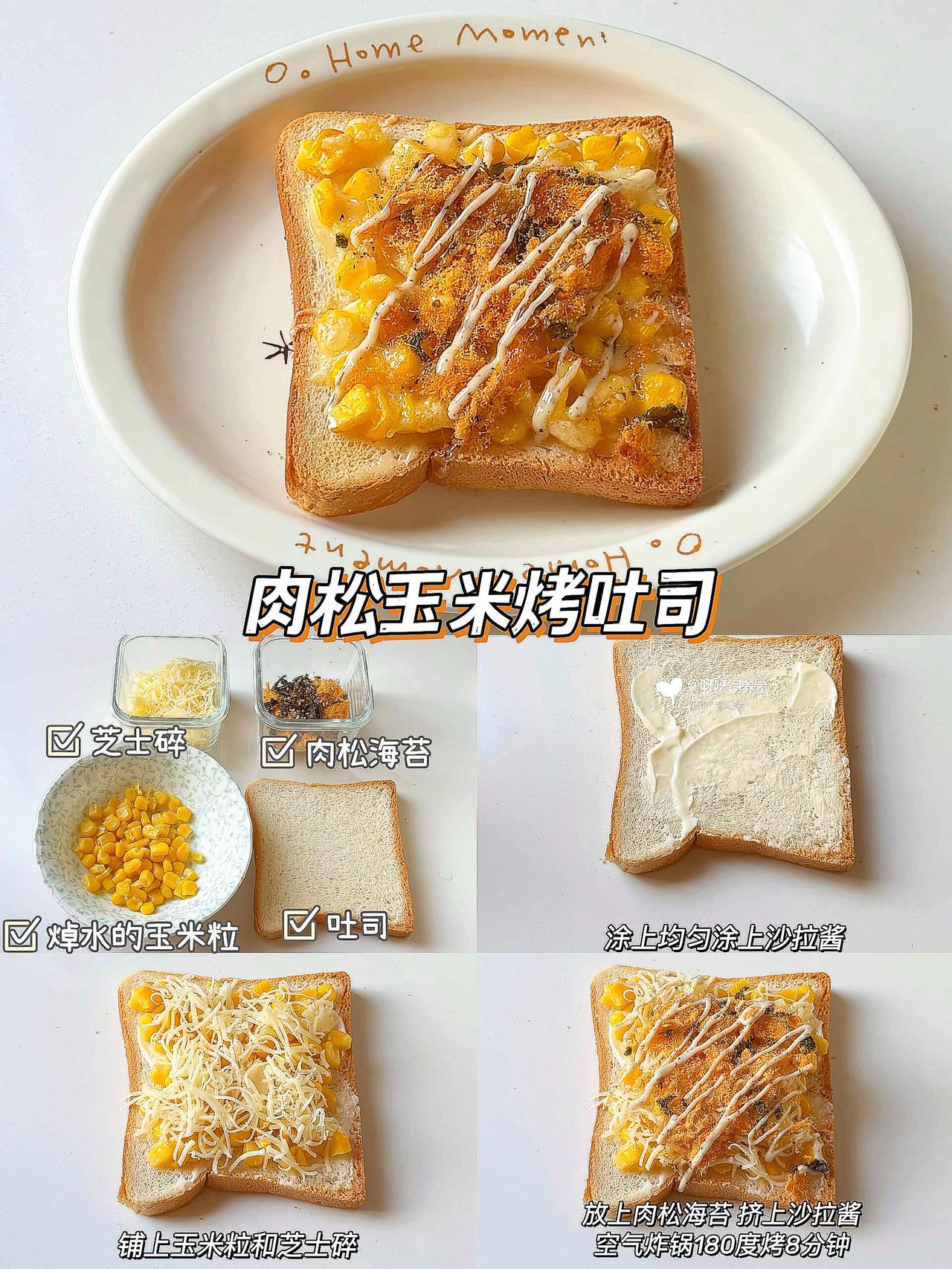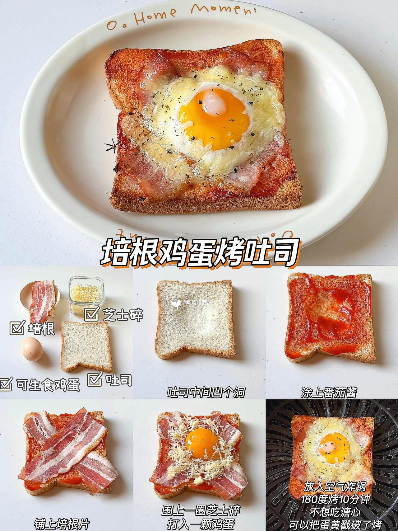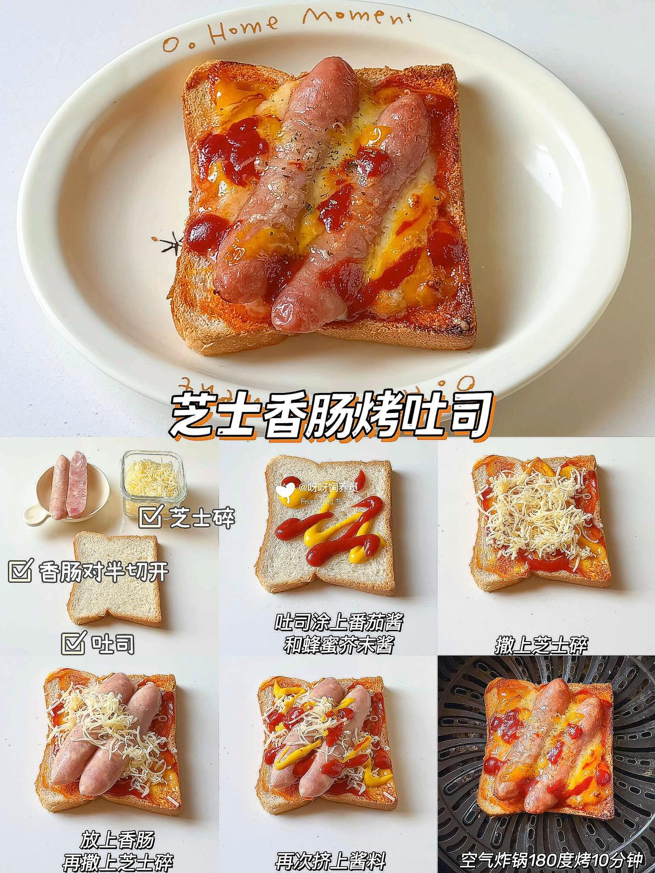 谁懂啊!早上多睡10分钟的幸福🥹 这款懒人烤吐司简直是打工人的续命神器💪 外酥里嫩还会拉丝🧀️ 比面包店买的还香! ✨6种搭配公式直接抄作业: 1️⃣培根鸡蛋👉🏻蛋白质拉满 2️⃣芝士红薯👉🏻奶香糯叽叽 3️⃣香蕉炼乳👉🏻甜党必入 空气炸锅/烤箱都能做🔥 180度烤出焦脆边边是关键‼️ 搭配牛奶就是满分早餐💯 💡生活再忙也要好好吃早餐呀 那些被食物治愈的清晨🌅 都是对自己最好的温柔~