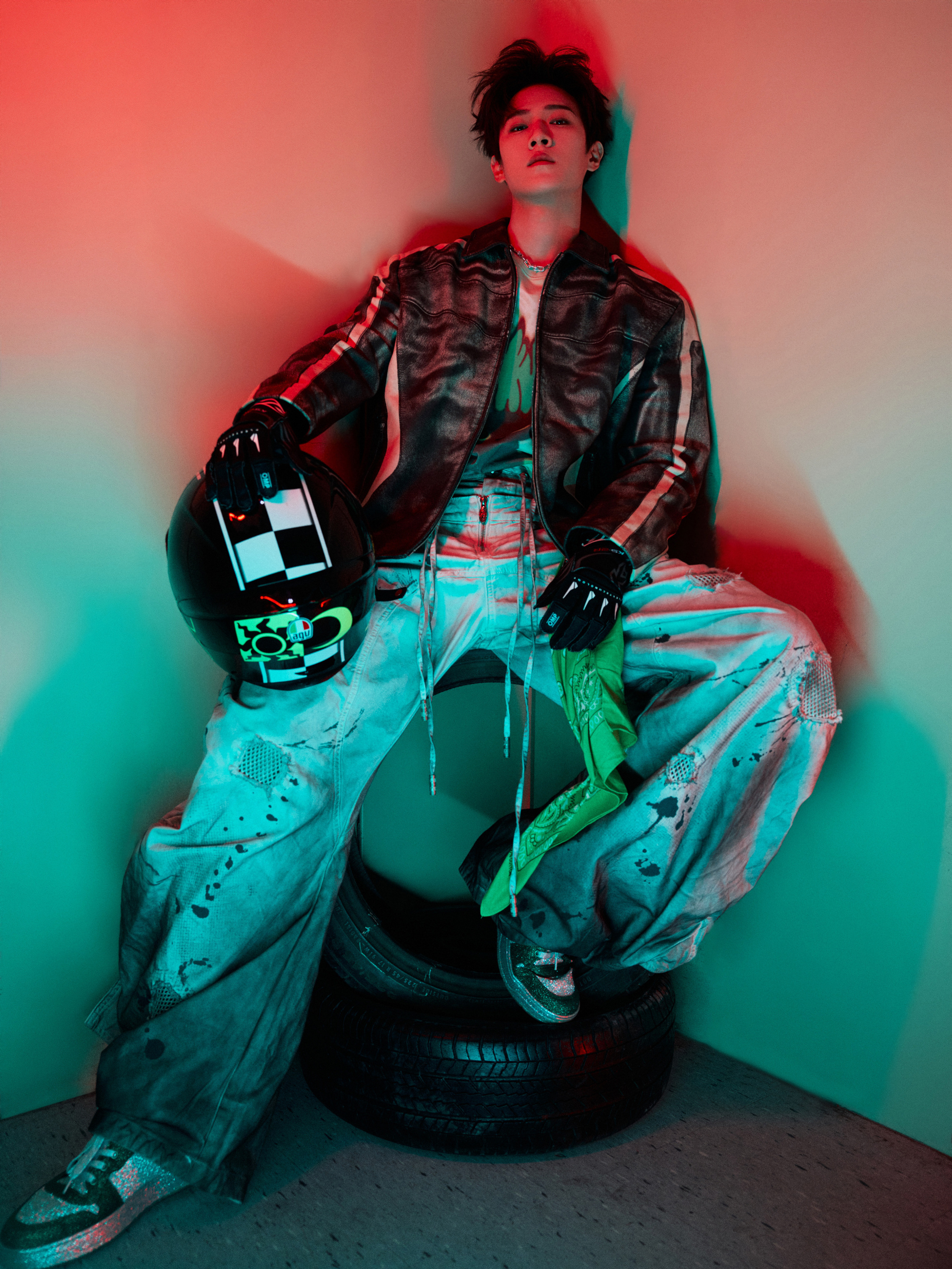 李昀锐|李昀锐F1赛车服造型李昀锐身穿Diesel皮衣,搭配Dior🕶️,Ti