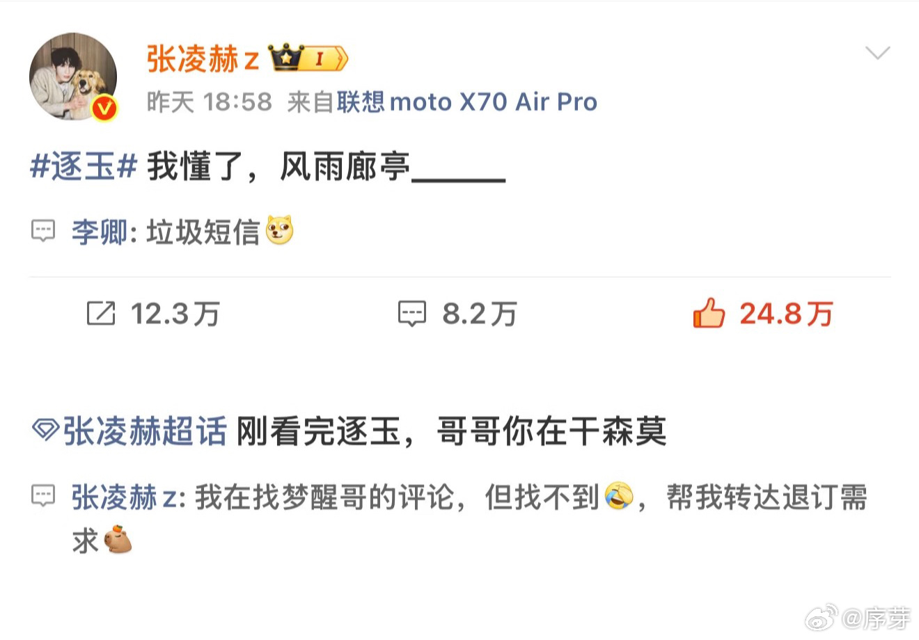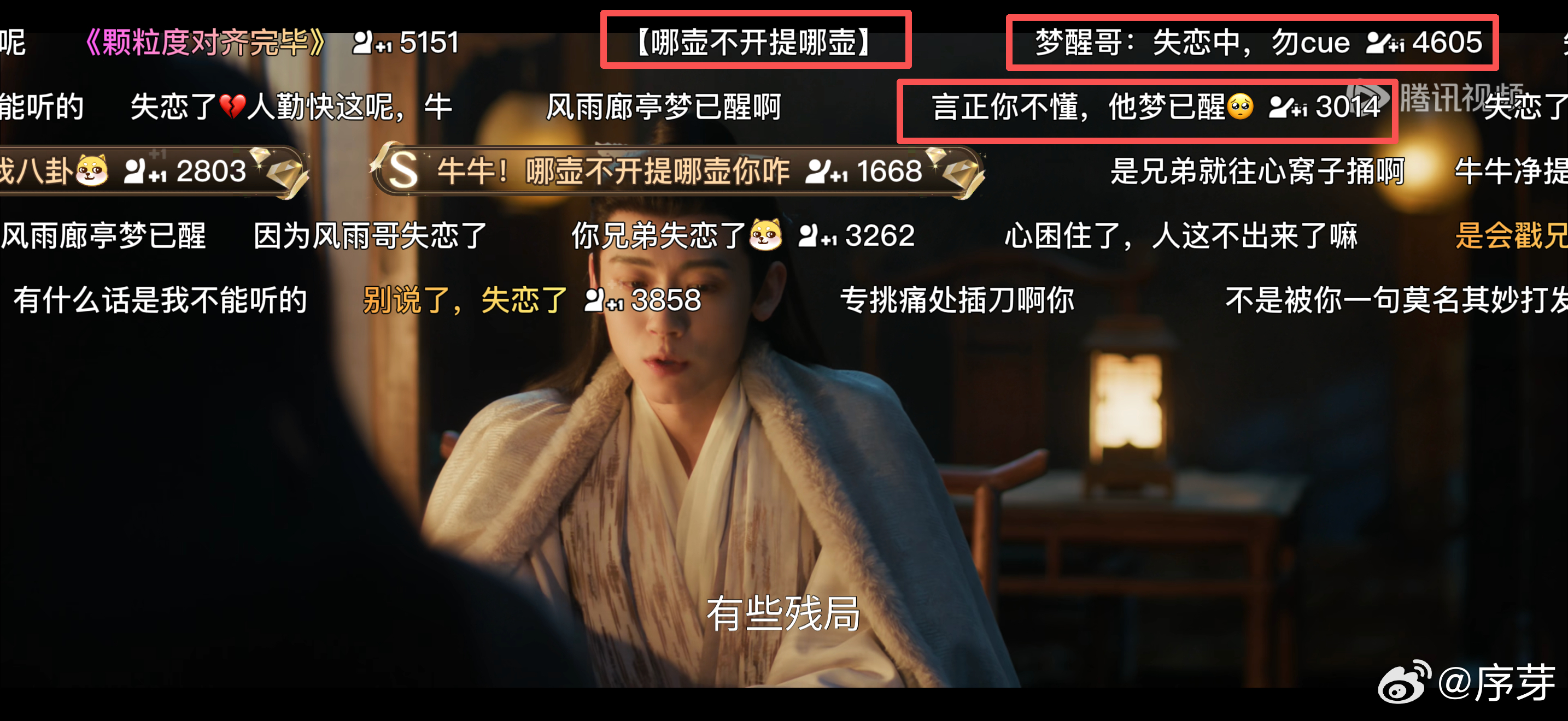 江畔哥vs梦醒哥 谢征雪地分别回军营,和老婆开始异地恋模式。篝火旁他忧郁地念出“江畔何人初见月”,想起前几天好兄弟说“风雨廊亭梦已醒”还觉得莫名其妙,现在自己却陷入同样的惆怅,“江畔哥vs梦醒哥”的情节太有梗,逐玉在鹅/腾讯追起来!