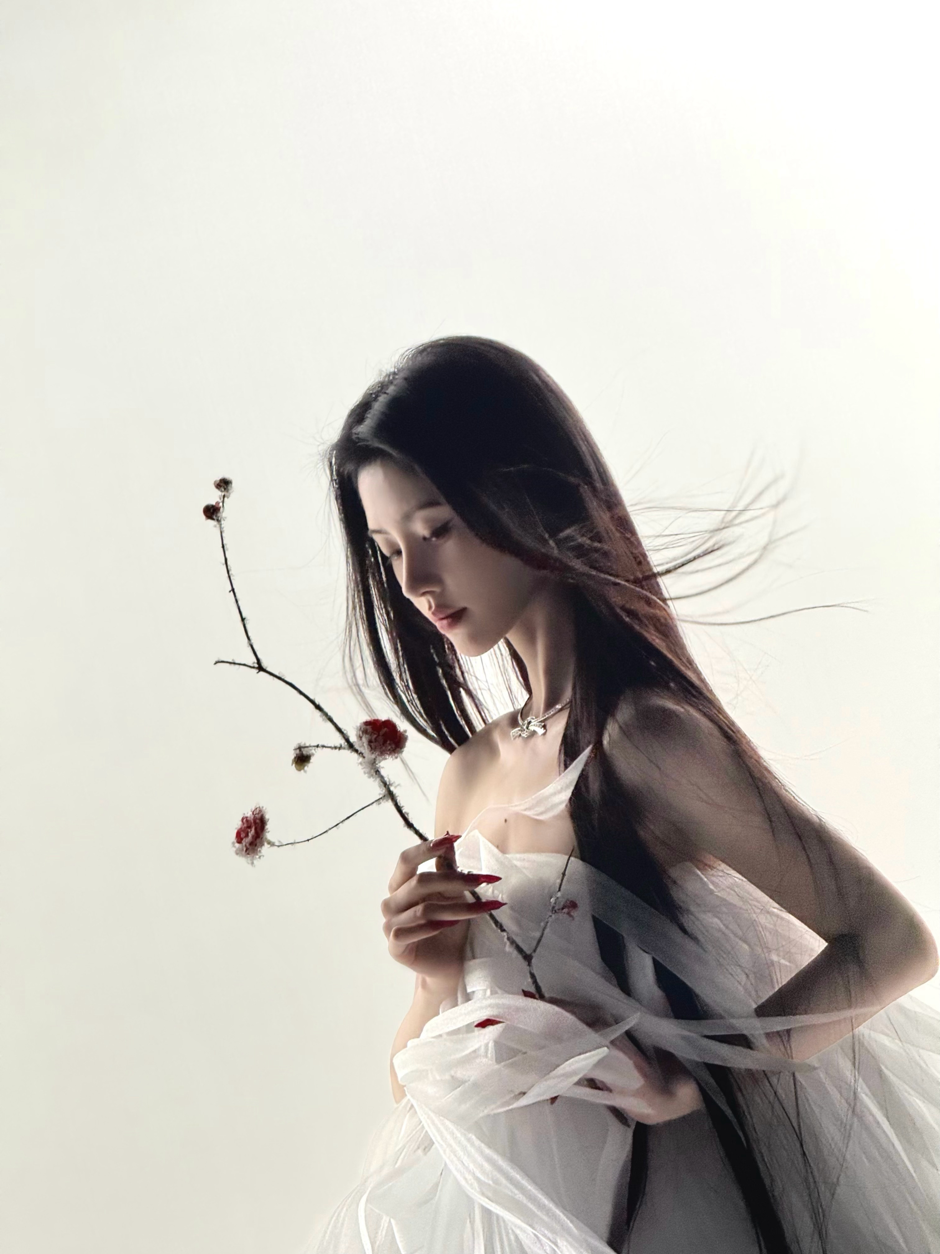 鞠婧祎杂志刷新最高纪录这张脸是艺术品啊艺术品黑长直垂落如墨,白纱轻裹肩线,指尖红甲与锁骨银链相映,每帧都像从古风画卷里走出来的仙子,美得自带疏离感🎞️