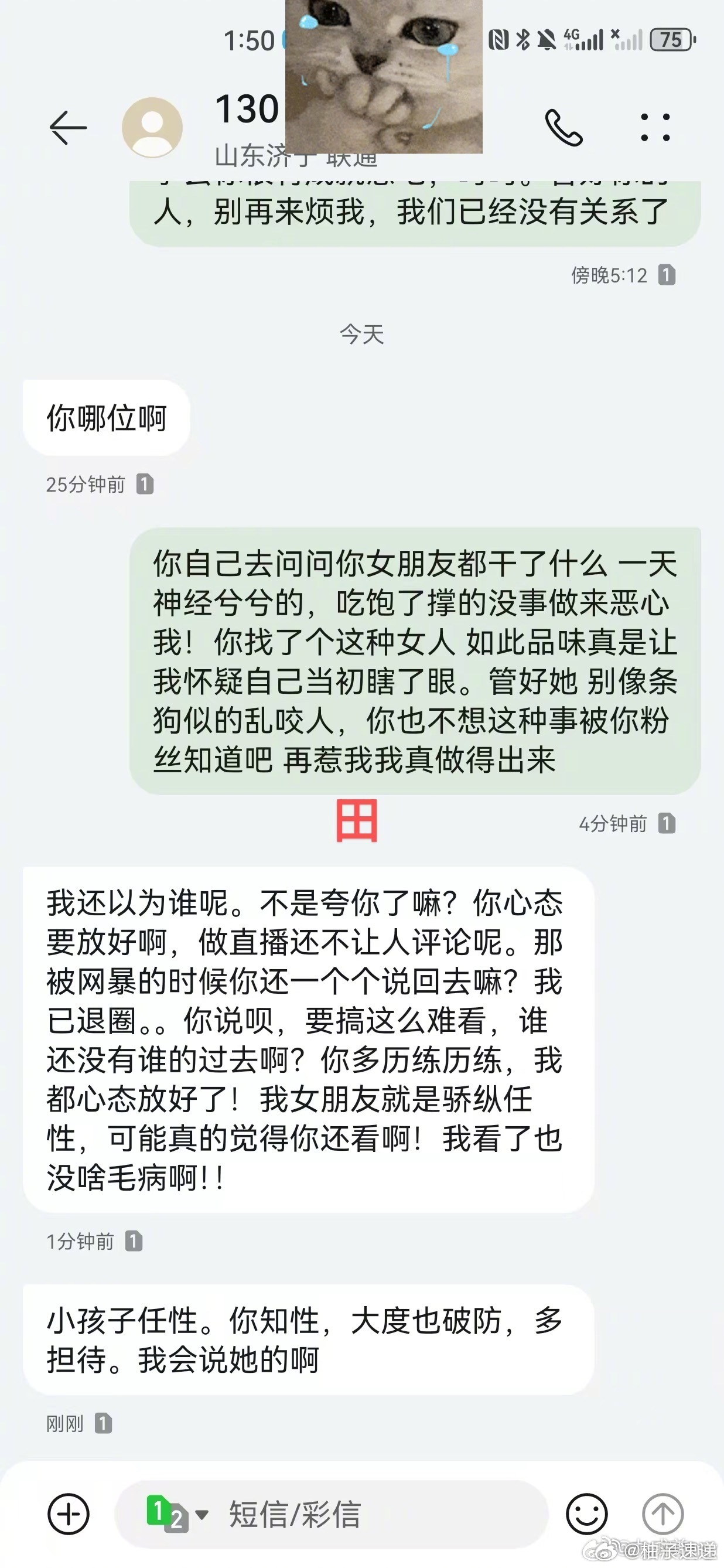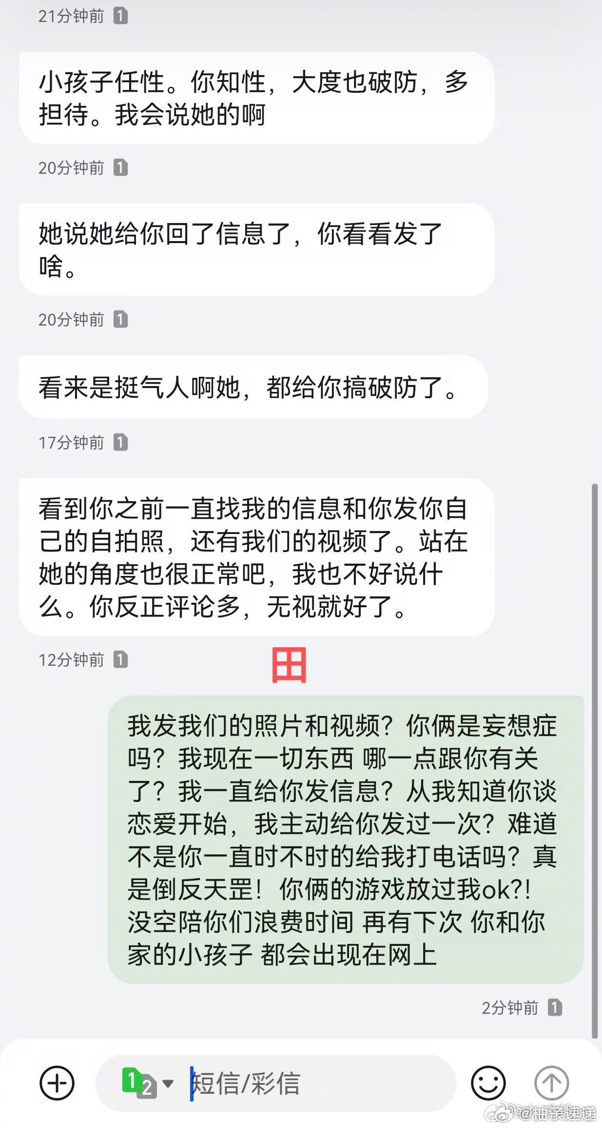 九成美若若聊天记录九成美 这些也是AI吗九成美今天再放聊天记录,曝光自己被若若整整骚扰了一年,换号轮番轰炸,田栩宁夹在中间反复横跳。从亲吻视频被质疑AI,到45张Live图怼脸输出,再到现在的聊天记录——网友忍不住问:这些也是AI吗?这场三人大戏,看得人一愣一愣的,这瓜越吃越复杂了~