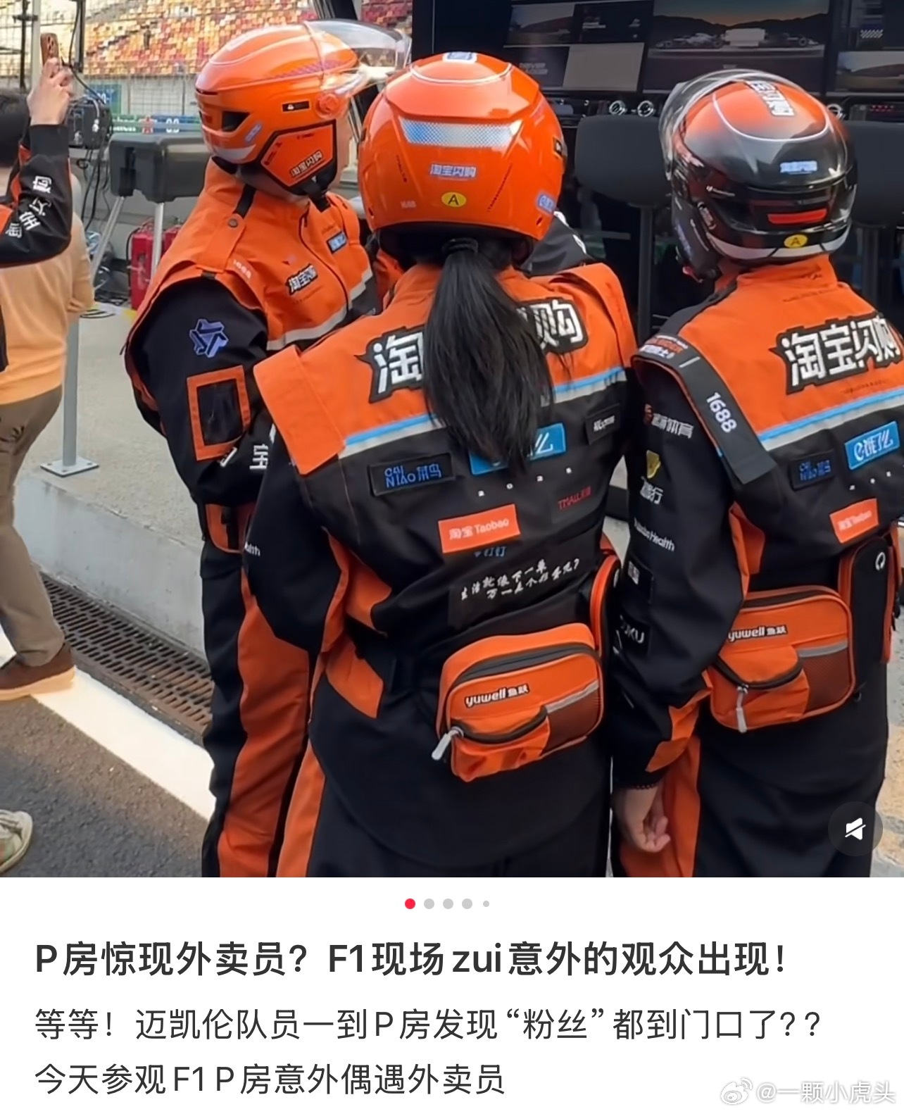 在F1比赛现场看到了外卖骑手F1中国大奖赛决赛现场有二十余名外卖骑手身着统一制服