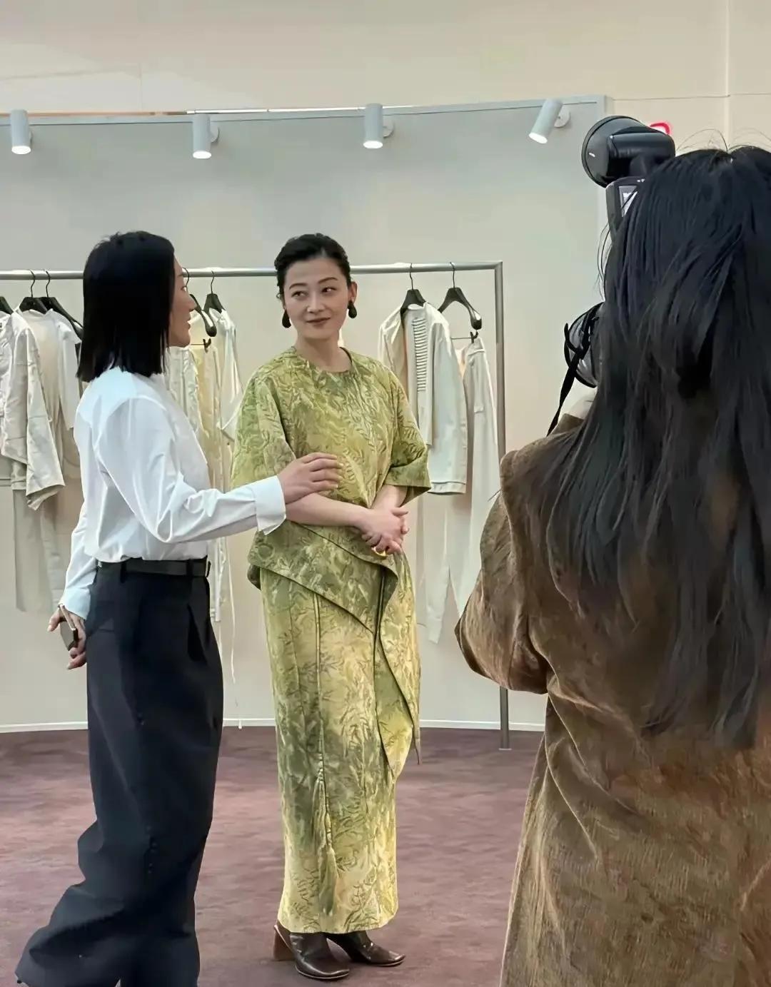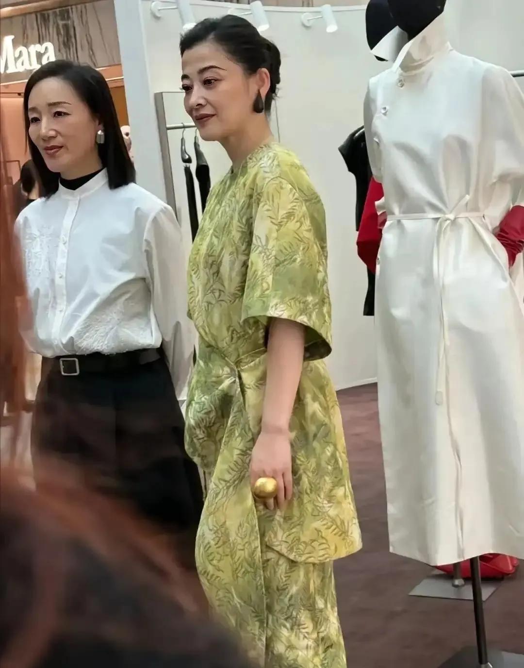 谁能想到这是49岁的梅婷!✨ 现身杭州万象城被偶遇,一身新中式绿裙太绝了! 盘发