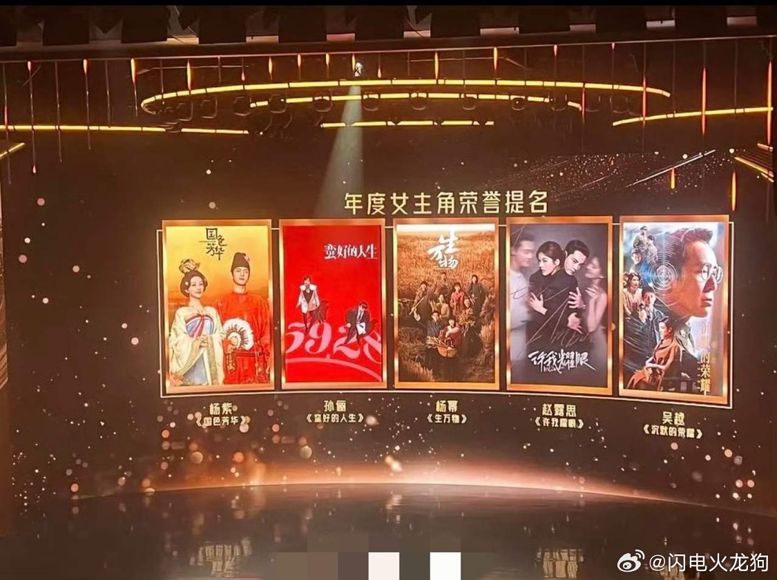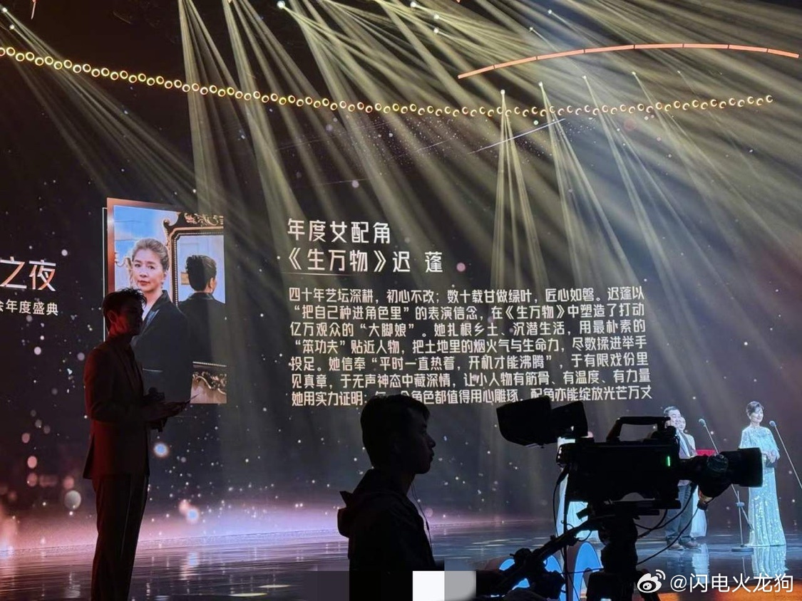 年度女主给了「荣耀」的吴越,年度男主给了「荣耀」的于和伟,年度女配给了《生万物》的迟蓬,年度男配给了「唐诡」的杨志刚,