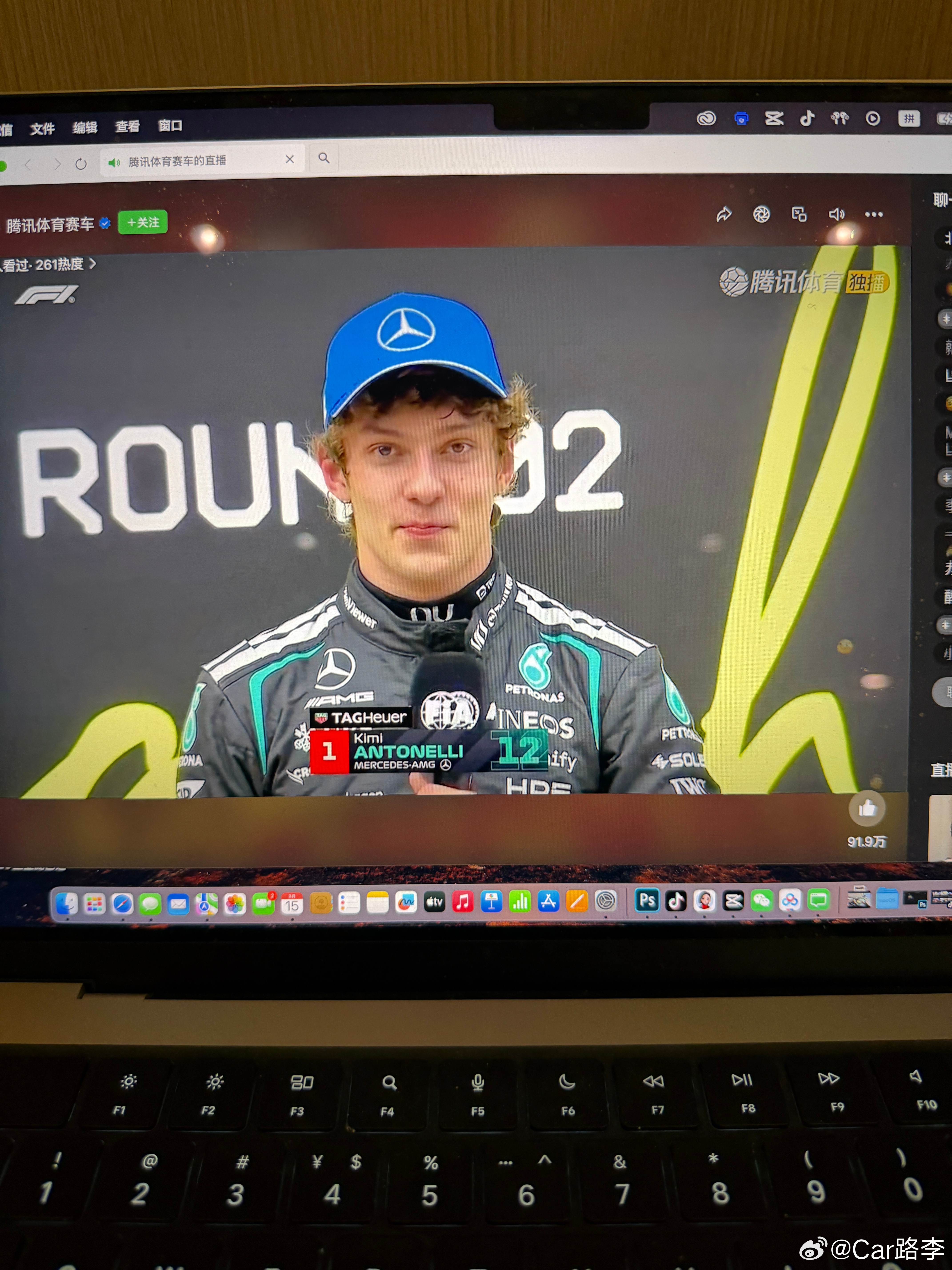 虽然今年没时间去看F1但是提前一年拿到了冠军签名安东内利夺F1中国站冠军 武汉·