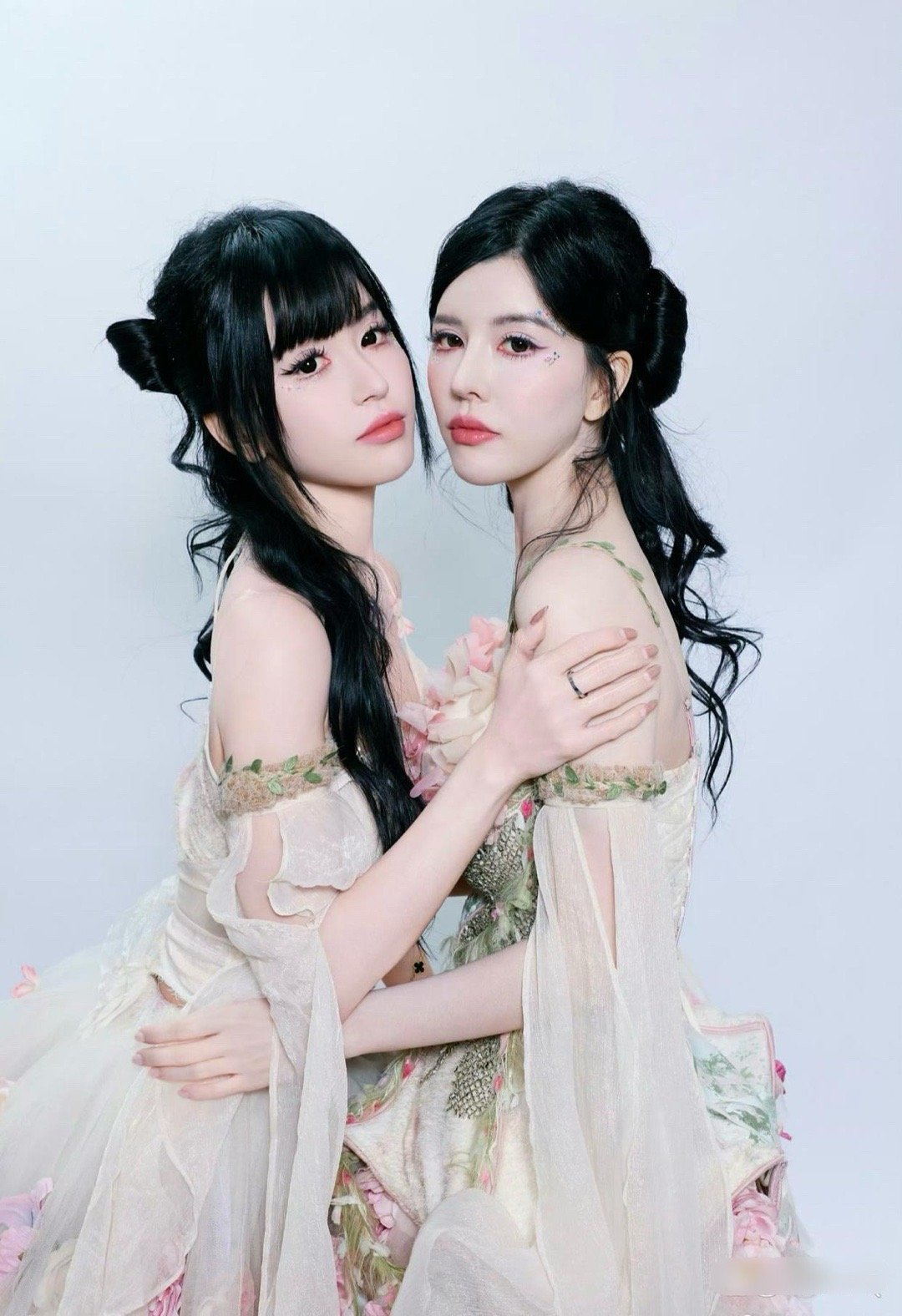 By2两姐妹现在也不强调统一性了,脸长得不一样了,发型也区分开了,有刘海的是妹妹。