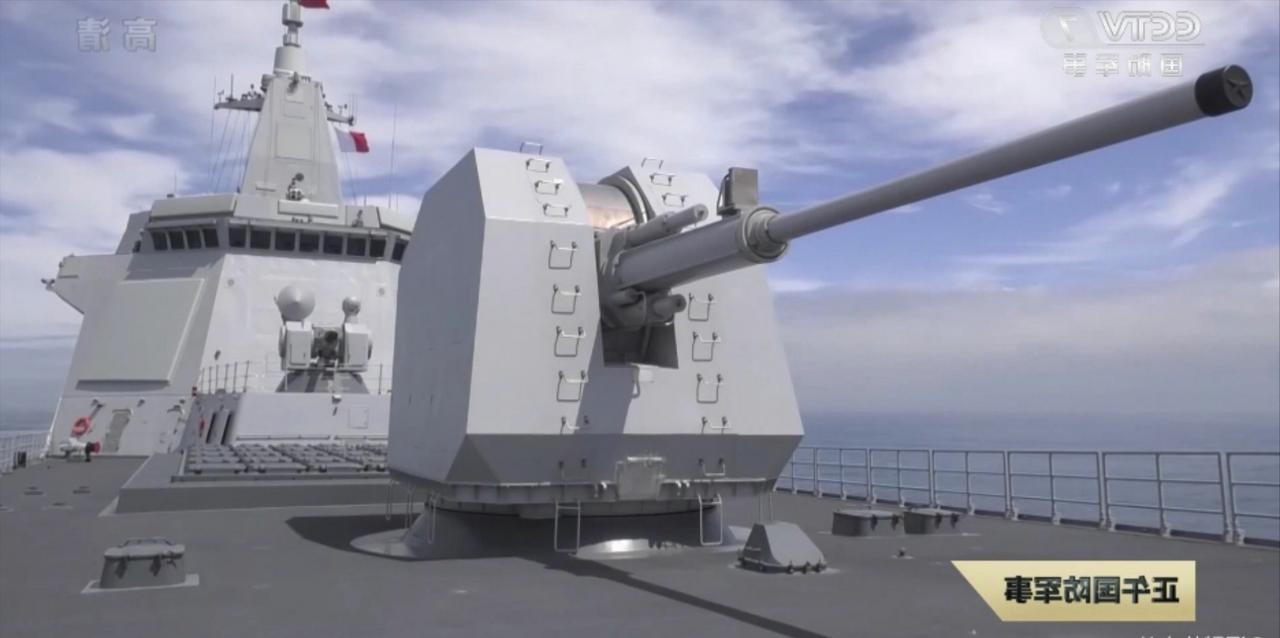 图1是最新一个批次的055大驱上的130毫米舰炮,图2是第一批次的055上的130毫米舰炮。新的改进型号,移除了炮塔外部的维护舷梯,整体看上去整洁多了。炮管根部上方还安装了一个圆形天线,可能是测速雷达,也有可能是炮口装订通信天线,可以在炮弹出膛瞬间装订引信参数。这种设计思路是考虑到炮弹在弹库和扬弹机里,引信部分都没有加电,加电是在炮膛中加速度超过阈值后才开始的。