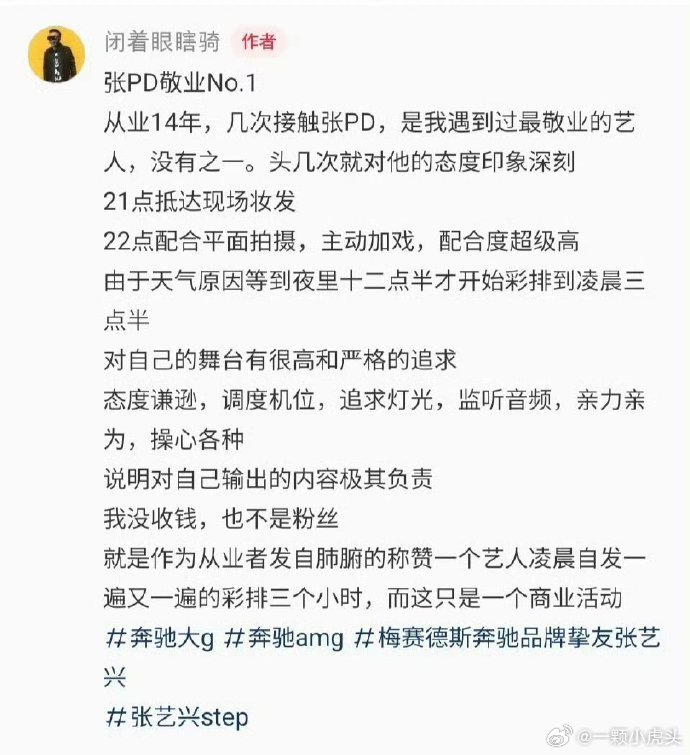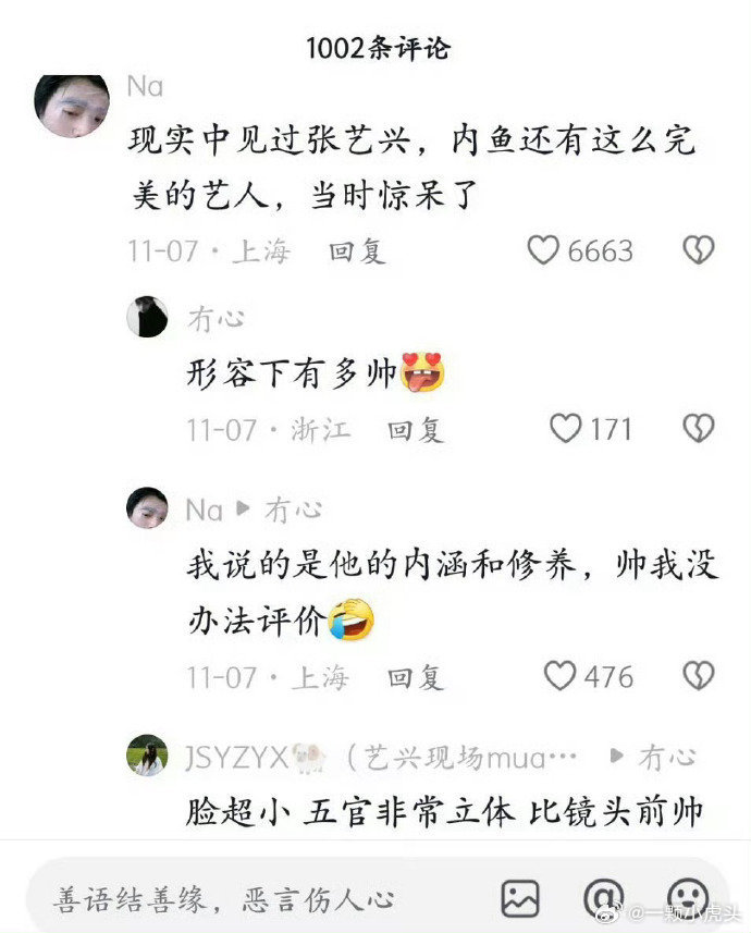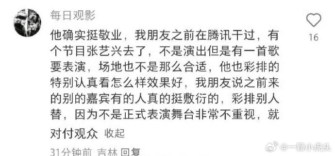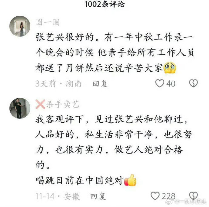 无论台前幕后、业内圈外,但凡与张艺兴有过交集的人,对他的评价都高度一致:专业、自律、谦逊、有实力、有格局。对舞台极致虔诚,对作品精益求精,对前辈尊重有礼,对后辈温和包容,把敬业与教养刻进骨子里,用实力与品行赢得所有人的认可。张艺兴